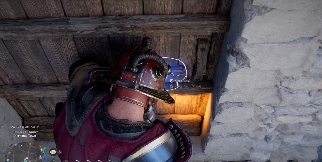 وهنا تظهر أهميتها الفعلية لأن Tech Gloves تجعل المفاتيح غير ضرورية في كثير من الحالات. فعندما تكون مجهزة وتقترب من باب مغلق يكفي أن تضغط على X أو A حتى تقوم القفازات بفتح الباب مباشرة ومن دون فشل. هذه الميزة تمنح اللاعب راحة كبيرة جدا أثناء التقدم داخل العالم لأنها تختصر الوقت وتلغي الحاجة إلى البحث المستمر عن المفتاح المناسب أو العودة لاحقا بعد العثور عليه. وفي لعبة واسعة مليئة بالمواقع والتفاصيل مثل Crimson Desert تصبح مثل هذه القدرة ذات قيمة عملية ضخمة لأنها تؤثر على الاستكشاف بشكل متكرر وليس في موقف واحد فقط.