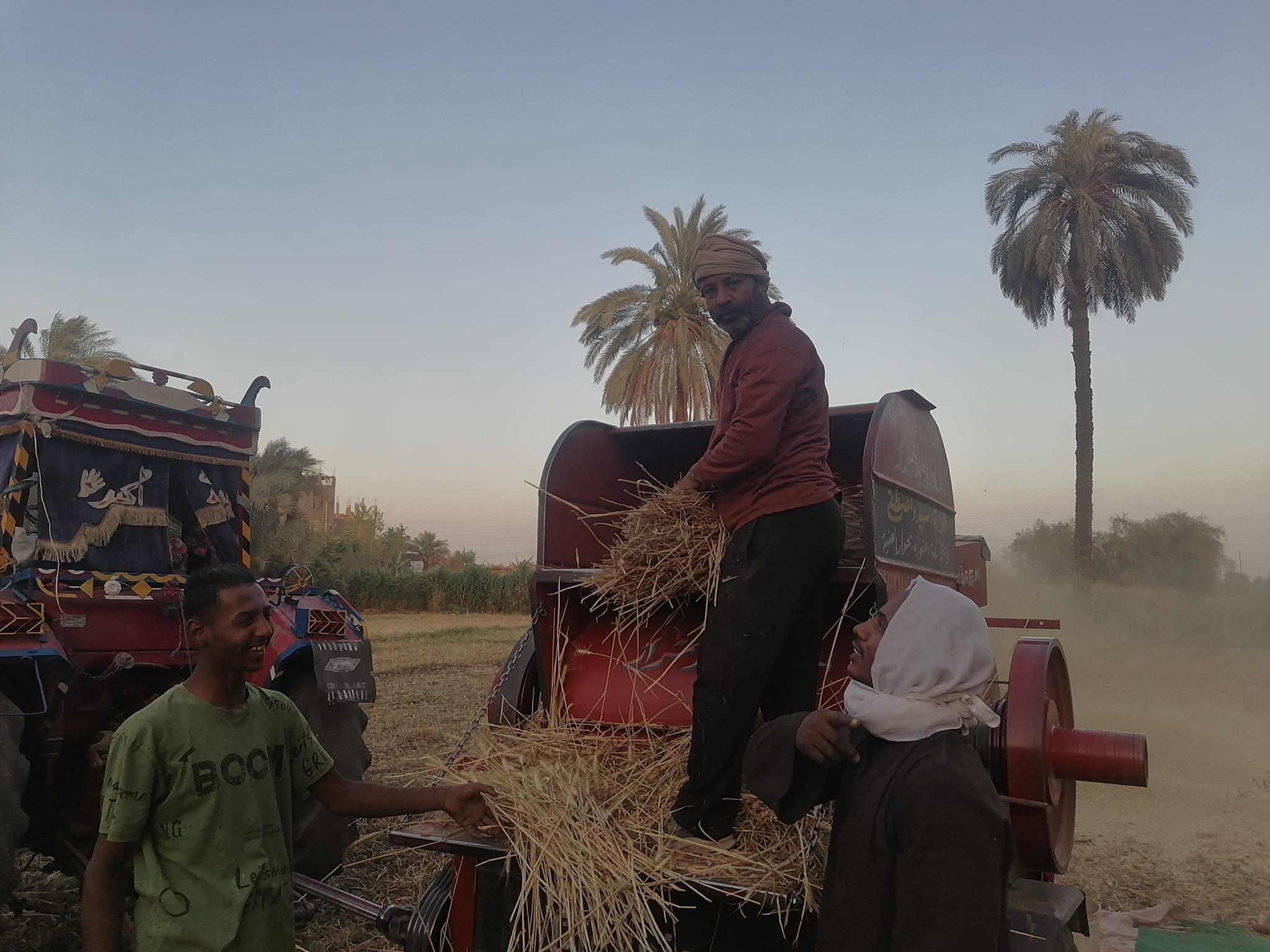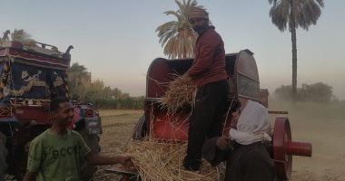 العمل فى بداية موسم حصاد ودراسه القمح بالأقصر