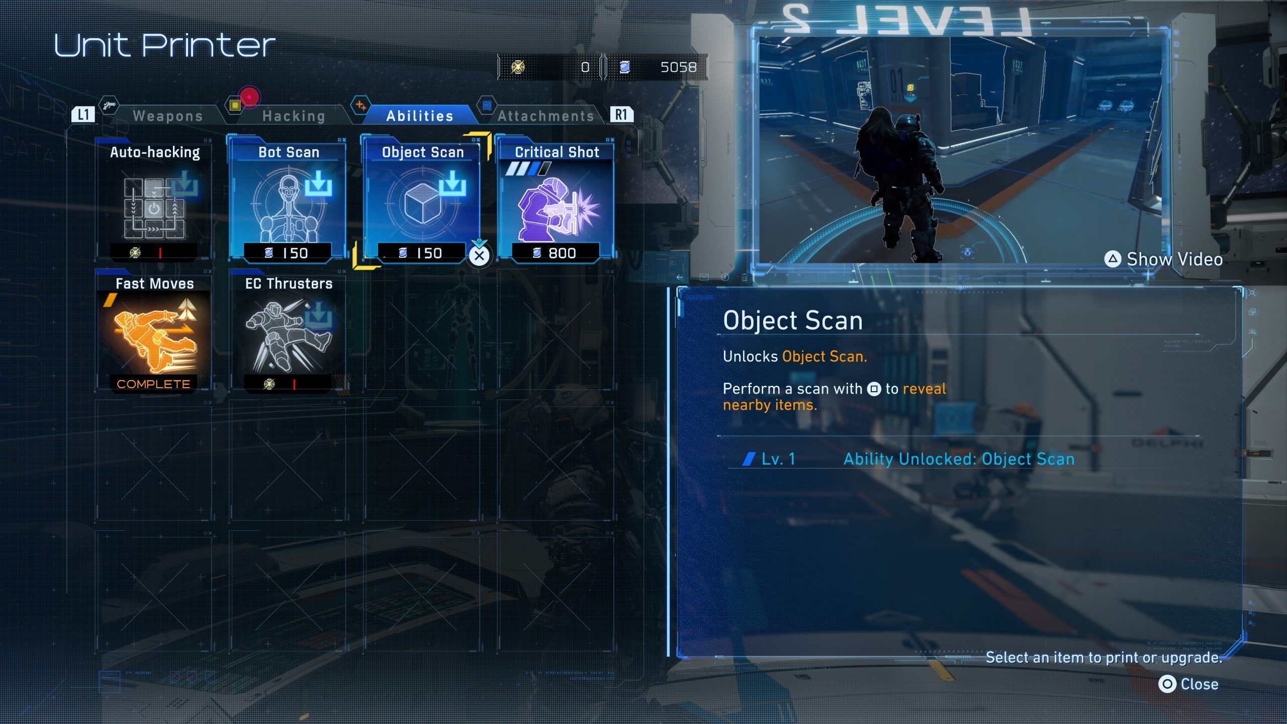 لتسهيل رحلتك، عليك أولاً الوصول إلى Sector 03: Terra Dome. عند هذه المرحلة، ستصبح قادراً على تعلّم قدرة Object Scan عبر التفاعل مع جهاز Unit Printer داخل الـ Shelter، مقابل إنفاق وحدة واحدة من Pure Lunum.