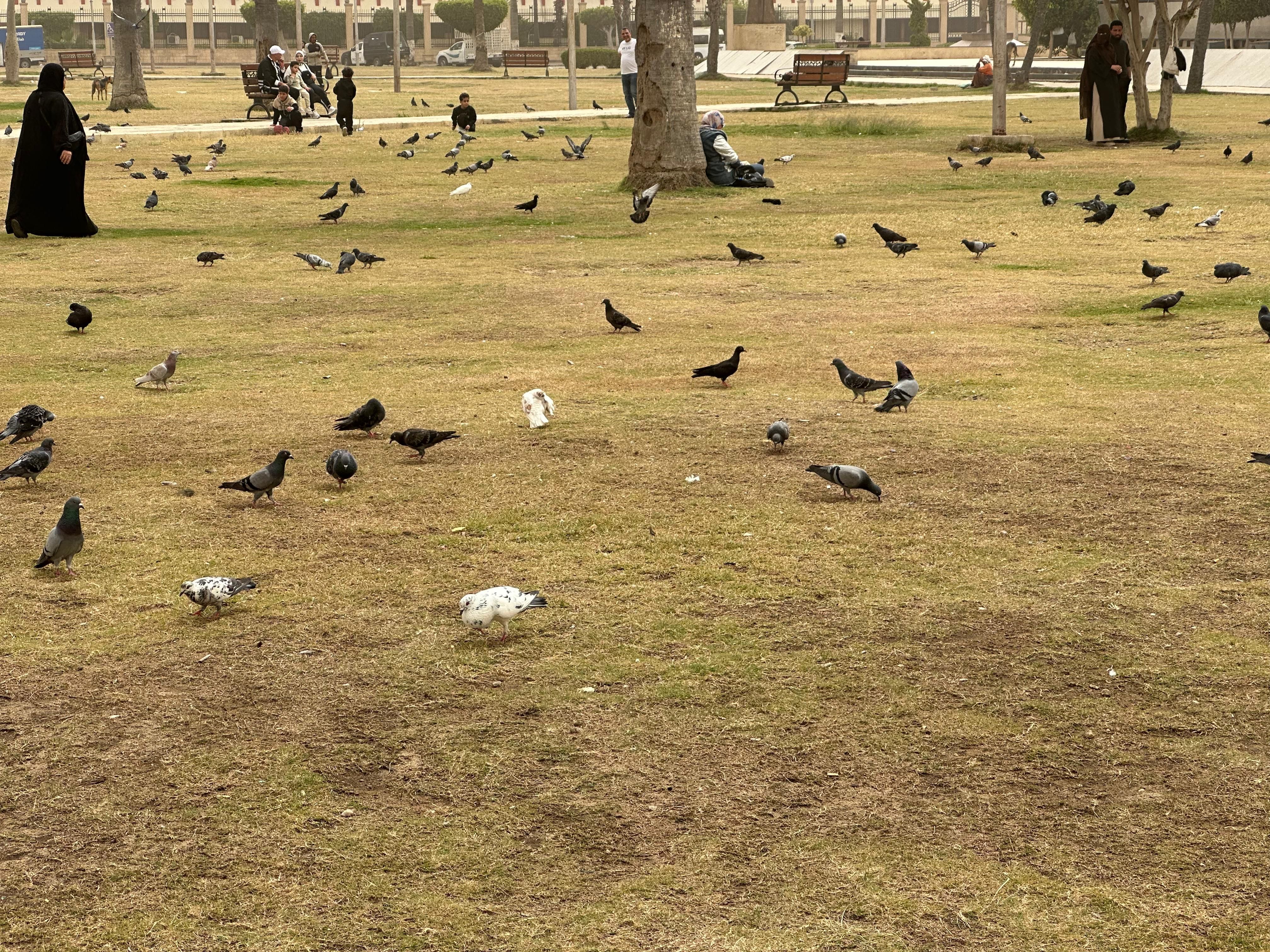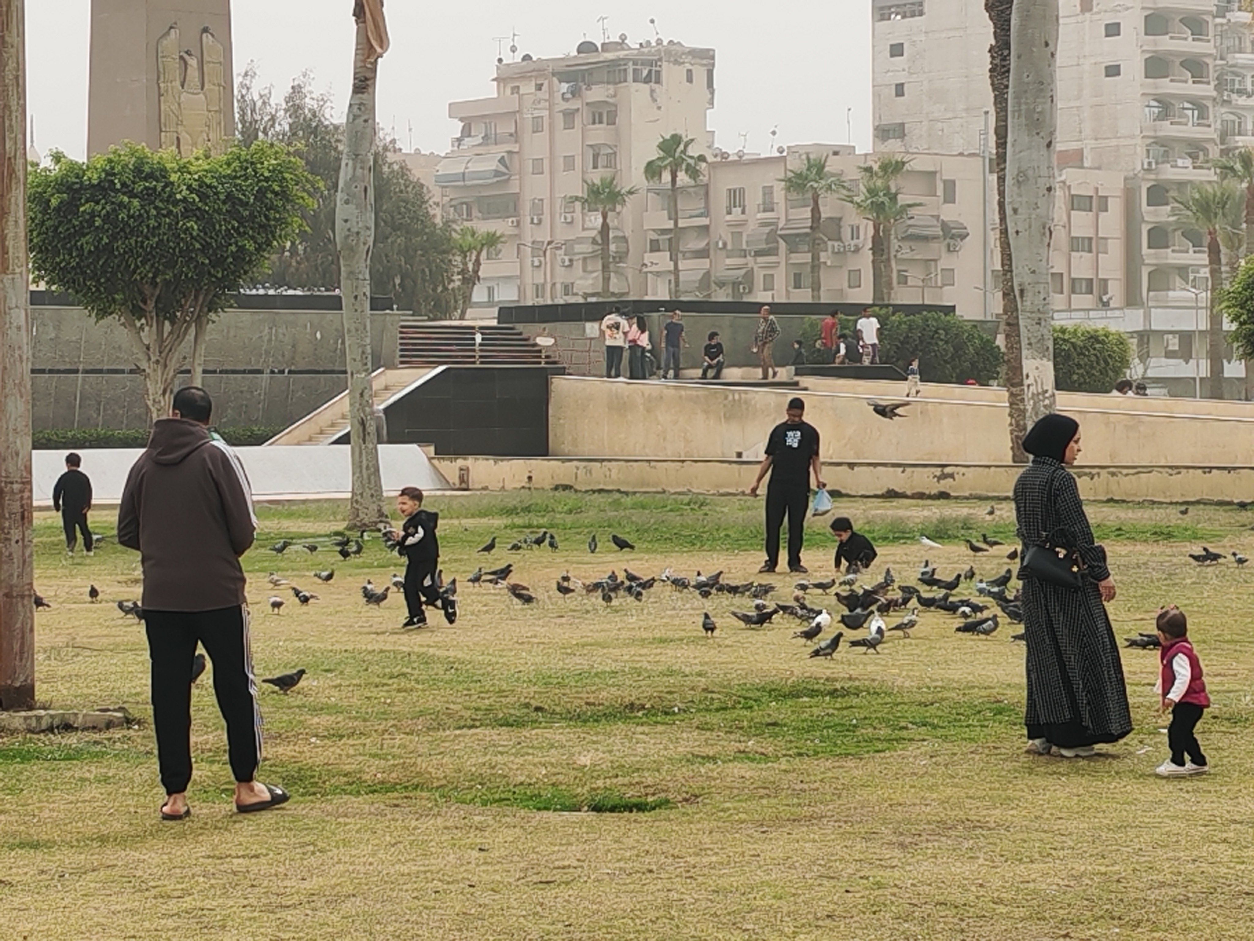 وشهد الميدان تجمعات كثيفة من الحمام، وسط تفاعل واضح من المواطنين والأطفال الذين حرصوا على التقاط الصور التذكارية وإطعام الطيور في أجواء مبهجة تعكس الطابع الحضاري والجمالي للمكان.