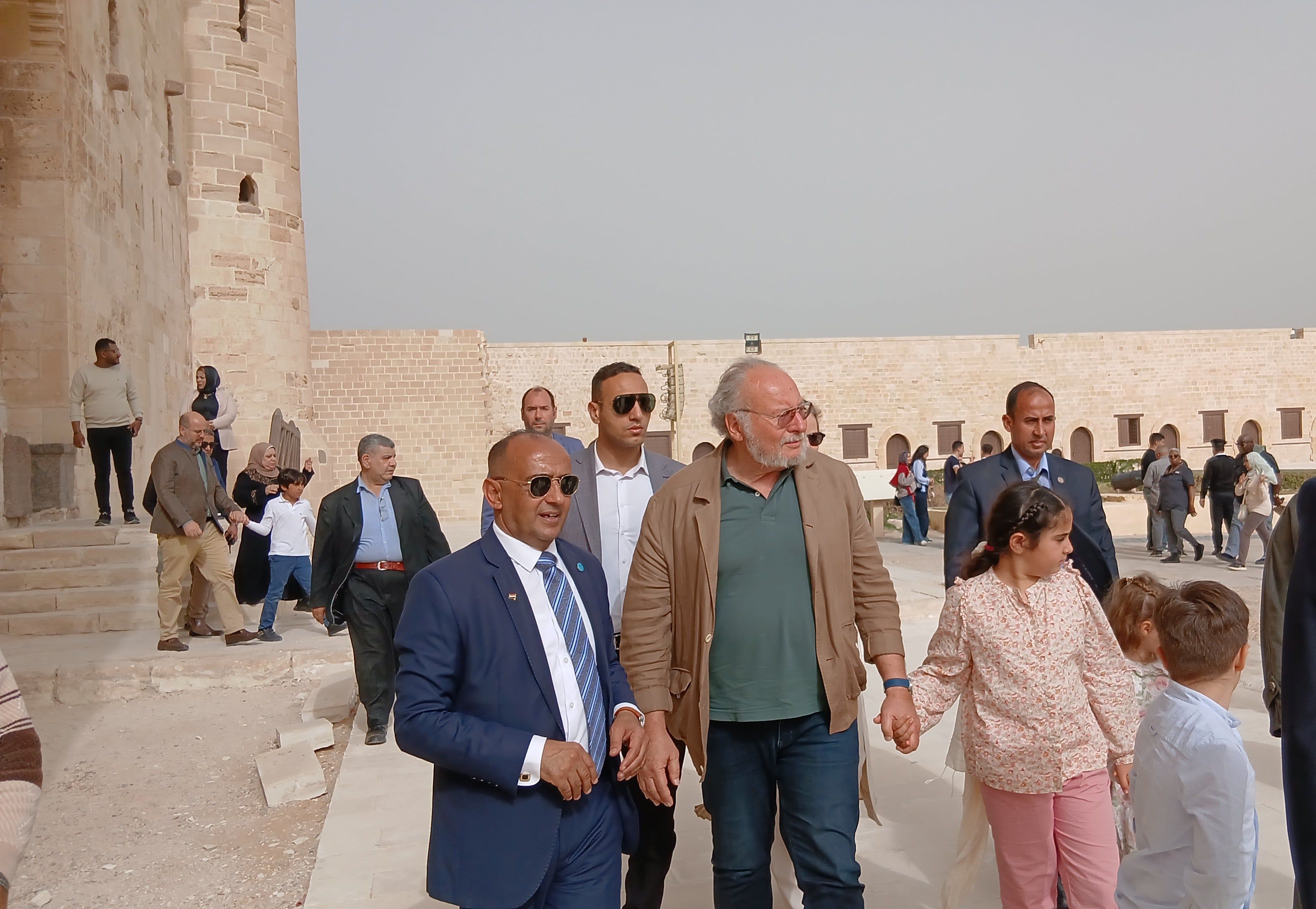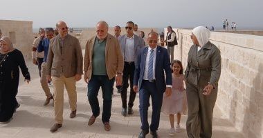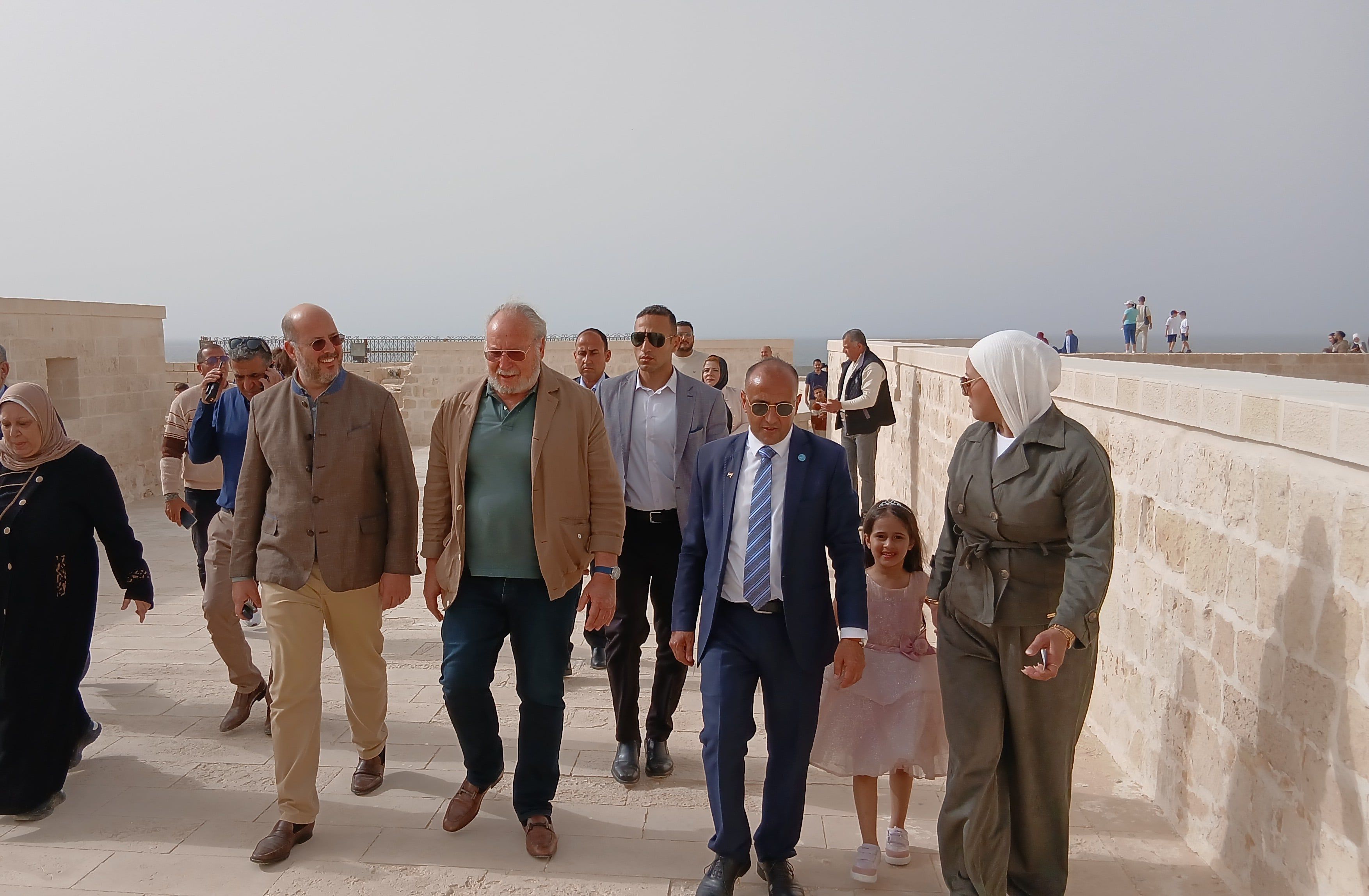 رافقه في الجولة محمد متولي مدير عام آثار الإسكندرية واللواء وليد منصور رئيس حي الجمرك ، وخلال الجولة شرح مدير عام أثار الإسكندرية معالم قلعة قايتباي الأثرية.