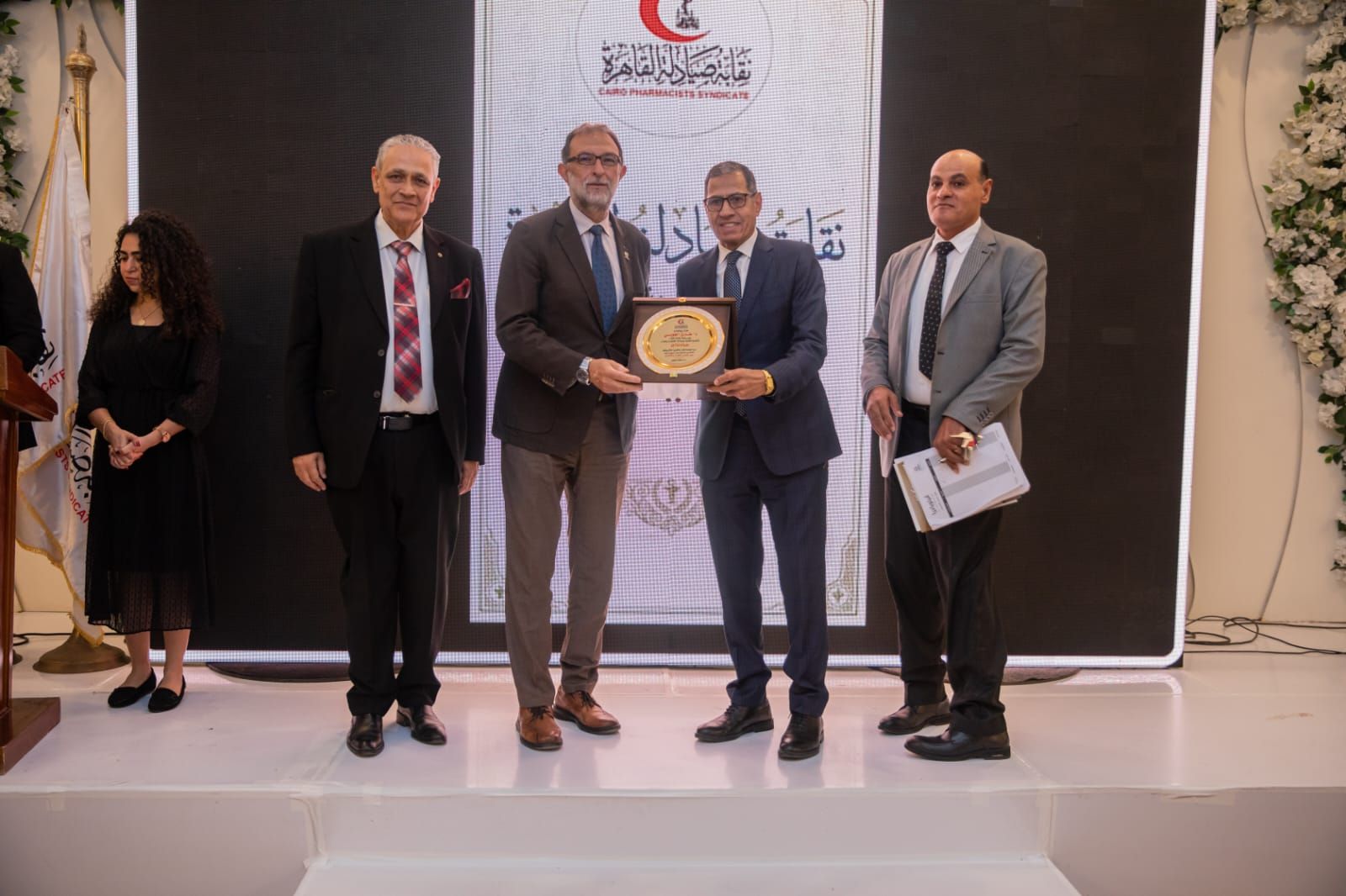 وشهدت الاحتفالية فقرة خاصة لتكريم عدد من الرموز المتميزة، حيث قدم الدكتور محمد الشيخ ونقابة صيادلة القاهرة التهنئة والدرع التذكاري للدكتور إبراهيم صابر، محافظ القاهرة، بمناسبة فوزه بجائزة التميز الحكومي العربي كأفضل محافظ على مستوى الدول العربية، تقديرا لإنجازاته في تطوير الخدمات بالعاصمة.