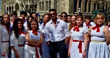 السبت، 18 أبريل 2026 12:45 منشر النجم أحمد العوضي صورة من كواليس فيلم "شمشون ودليلة" الذي يقوم بتصويره حاليًا في العاصمة المجرية بودابست وسط مجموعة من الفتيات وسط حالة من الشغف نتيجة التعاون الأول مع النجمة مي عمر.