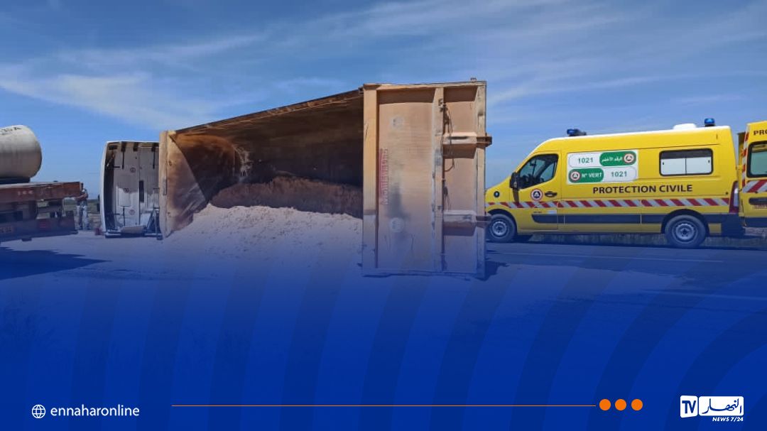 وحسب بيان لمصالح الحماية المدنية، تدخلت الوحدات المسعفة في حدود الساعة 12:28 زوالاً. من أجل حادث تمثل في انحراف وانقلاب شاحنة محملة بالرمل.