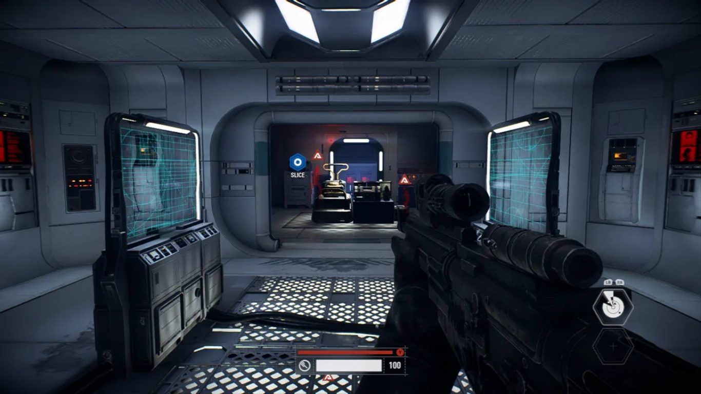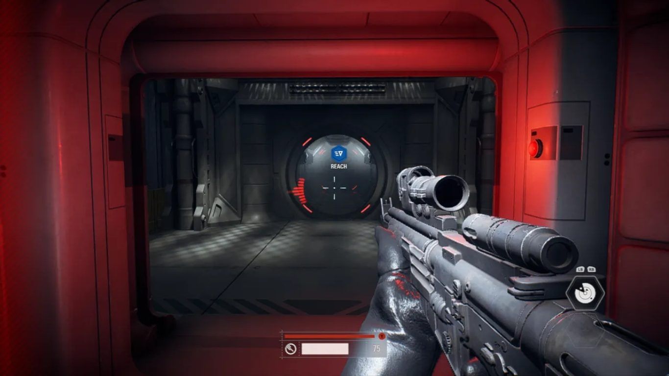 - قم بالقضاء على أي جنود من المتمردين تصادفهم أثناء تقدمك باتجاه غرفة معادلة الضغط. وخلال مرورك عبر ما يبدو أنه منطقة مخصصة لأعمال الصيانة أو التشخيص داخل السفينة، ستصل إلى ممر ضيق منفرد يؤدي إلى باب مغلق. اطلب من ID10 اختراق الباب وفتحه، لكن كن مستعدًا لأن المتمردين سيحاولون تنفيذ هجوم مباغت عليك فور فتحه. قم بالقضاء عليهم بأسرع ما يمكن دون التهاون.