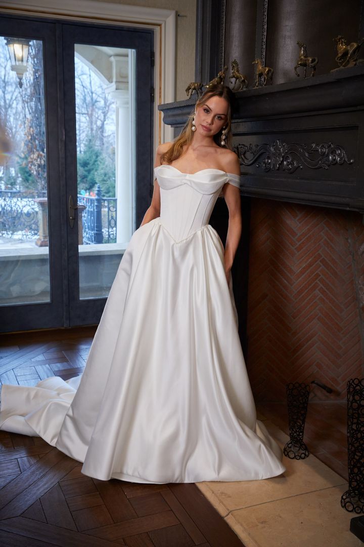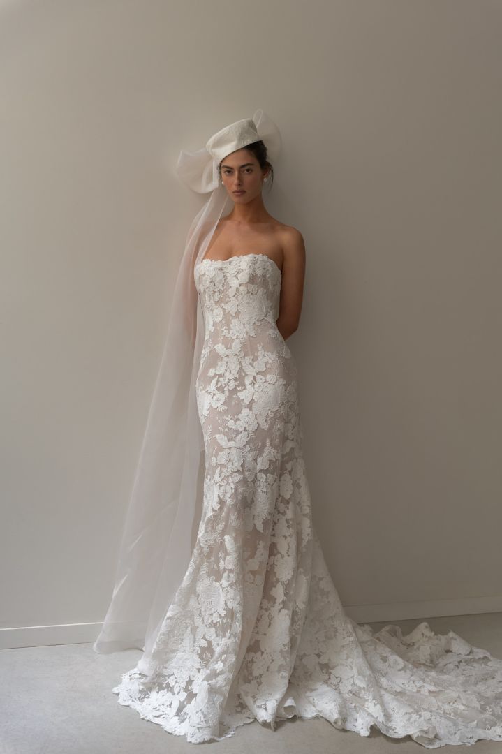 ليست فساتين الزفاف بدون حمالات جديدة في عالم حفلات الزفاف، لكنها بدت هذا الموسم أكثر عصرية من أي وقت مضى. أعاد المصممون ابتكار فتحة الرقبة الكلاسيكية بتفاصيل عصرية وجريئة، من الثنيات المنحوتة إلى أشكال عيون القطة الحادة والحواف المتموجة الناعمة. ولعبت الأزهار دوراً محورياً أيضاً، حيث تزيّنت الصدريات بدون حمالات بتطريزات وزخارف تشبه باقات الزهور، مما أضفى على منصة العرض لمسة رومانسية، وكأن العروس هي باقة الزهور نفسها. والنتيجة هي رؤية عصرية لقصة كلاسيكية خالدة، مُعززة بالخامات والتفاصيل المميزة.