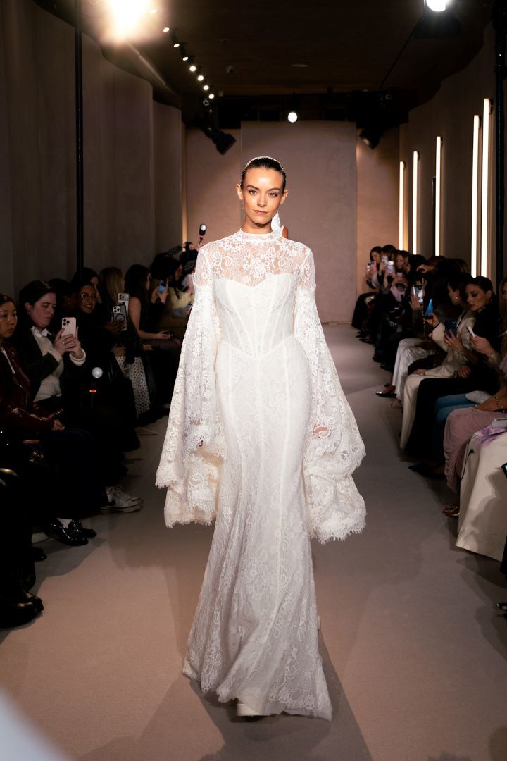 يكاد يكون من الأسهل حصر العلامات التجارية التي لم تستخدم الدانتيل. فقد كان حاضراً بقوة في أسبوع الموضة للعرائس، لكن هذا الموسم بدا بعيداً كل البعد عن المألوف. فبينما حافظ بعض المصممين على التصاميم الكلاسيكية، أعاد الكثيرون ابتكار الدانتيل بأساليب عصرية وجديدة، حيث قاموا بدمج طبقات من دانتيل شانتيلي الرقيق مع التطريزات أو وضعوه تحت الأقمشة الشفافة لإضفاء لمسة أكثر نعومة ورقة.