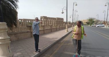 وأوضح رئيس مدينة الأقصر، أنه تم كنس الأتربة الناعمة من الطريق ونظافة البرجولات، فضلاً عن رفع كفاءة الزراعات وتقليم الأشجار وتنظيف الأحواض ورى النباتات بمنطقة كورنيش النيل، حفاظاً على المظهر الجمالي والحضاري لمدينة الأقصر والظهور بالمظهر اللائق أمام السائحين.