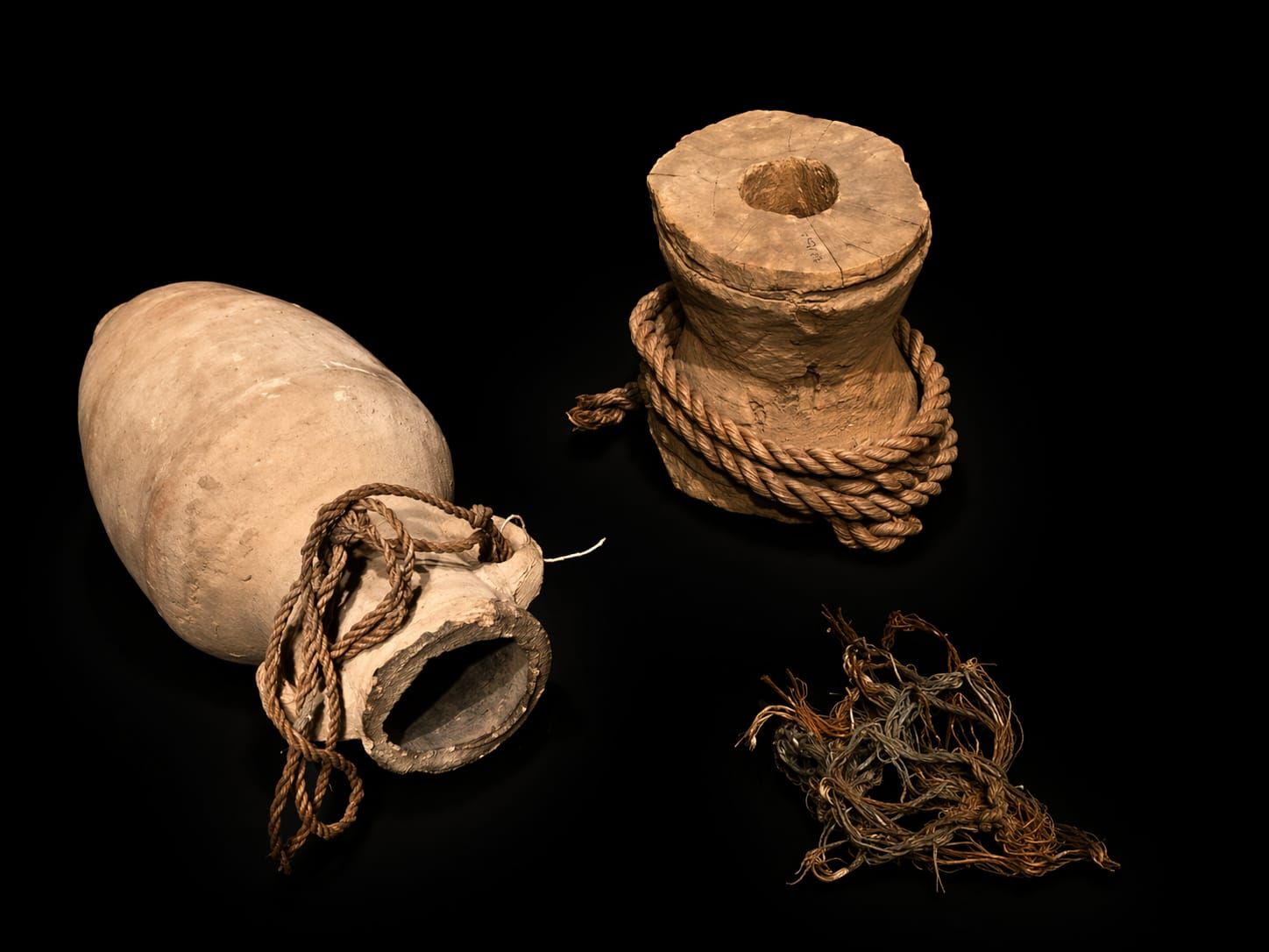 وأضاف إنه من بين المعروضات كرسي بدون مسند، جرة فخارية مزودة بحبل، زوج من الصنادل المصنوعة من خوص النخيل المجدول، سلال مجدولة بأشكال مختلفة، منها أسطواني الشكل مزود بحبل للتعليق وأخرى بغطاء محكم، بالإضافة إلى بكرة خشبية بحبل، وحبات من ثمار حب العزيز، وعقد من الخوص من منطقة ذراع أبو النجا، إلى جانب ثمرتي بلح ومجموعة من السلال والأغطية المصنوعة من الخوص.
