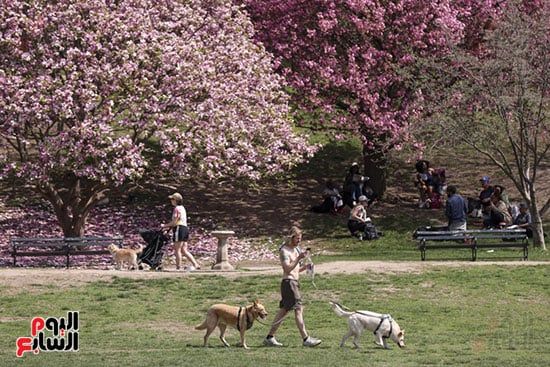 وبرزت مشاهد خروج السكان إلى حديقة بروسبكت بارك في حي بروكلين بمدينة نيويورك، حيث تفتحت أزهار الكرز الوردية وسط سطوع الشمس، واستمتع الزوار بأجواء ربيعية مميزة داخل الحديقة. وقضى الزوار وقتًا ممتعًا في ممارسة الرياضة والاسترخاء والتقاط الصور التذكارية، كما اصطحب البعض حيواناتهم الأليفة لقضاء أوقات ممتعة في الهواء الطلق.