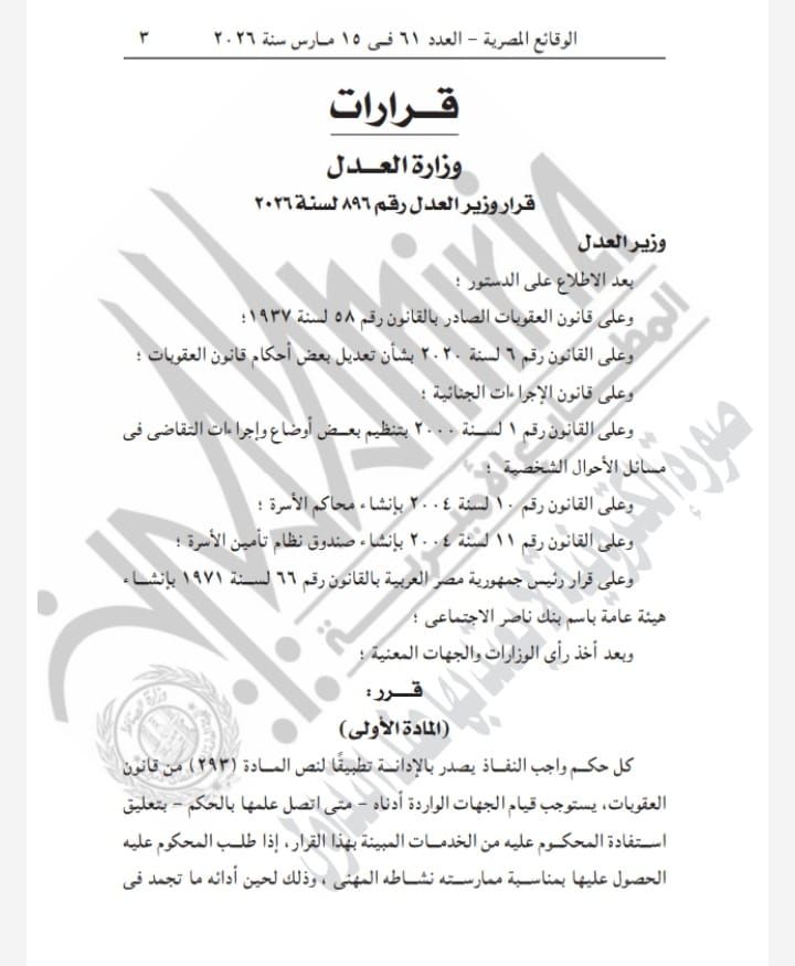 الأحد، 19 أبريل 2026 07:25 مفي خطوة جديدة، تعكس التزام الدولة بتطبيق القانون وحماية حقوق المرأة والطفل، بدأت الجهات المعنية بالقرار الصادر من المستشار محمود الشريف وزير العدل رقم 896 لسنة 2026، الخاص بربط تعليق الخدمات الحكومية للمحكوم عليهم بأحكام نهائية فى قضايا النفقة، قى تنفيذ القرار اعتبارا من اليوم 19 إبريل.
