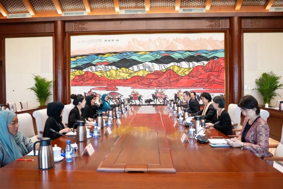 وبحث الجانبان، خلال اجتماع مع لي فو يينغ، من حكومة بلدية بكين، سبل تعزيز التعاون المؤسسي، وتبادل الخبرات في تطوير سياسات ومبادرات شاملة تدعم تمكين المرأة، مع التركيز على أبعادها الاقتصادية والتنموية والاجتماعية والثقافية، واستكشاف فرص إطلاق مبادرات مشتركة تسهم في توسيع مشاركة المرأة وتعزيز دورها في القطاعات الحيوية المختلفة، بما يدعم تكامل الجهود بين الجانبين ويواكب متطلبات المرحلة المقبلة.