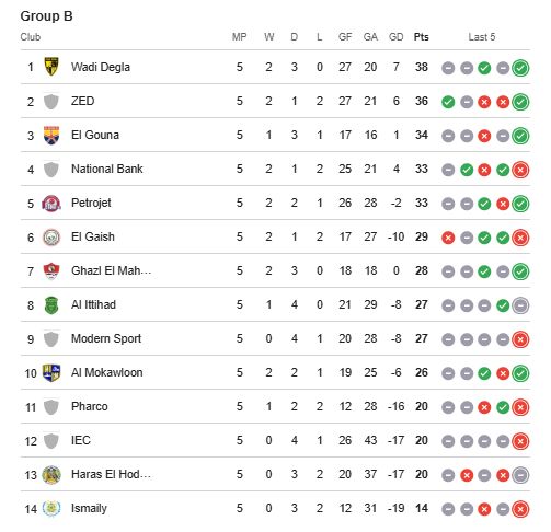 وجاء جدول ترتيب مجموعة الهبوط في الدوري المصري كالتالي: