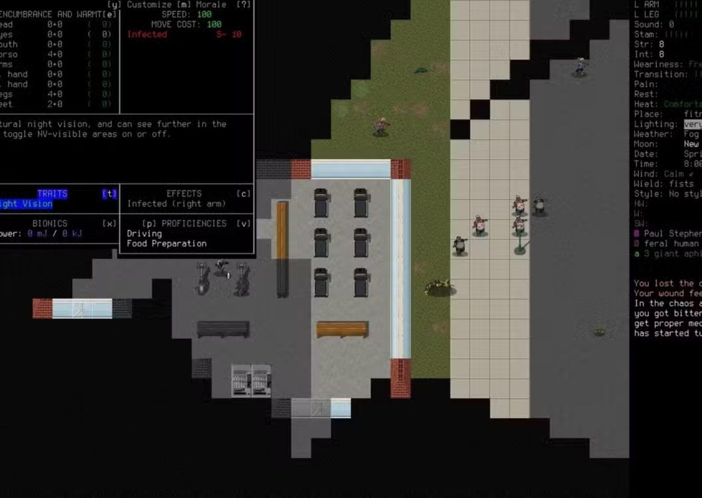 وتصبح قيمة اللعبة أوضح أكثر بالنسبة إلى من لا يستطيعون تشغيل ألعاب بقاء الزومبي الأكثر تطلبا مثل Project Zomboid أو 7 Days to Die لكنهم ما زالوا يريدون الاستمتاع بأجواء التوتر وإدارة الموارد والخوف من الخطأ الواحد داخل عالم مدمر وخطير فهنا تقدم Cataclysm: Dark Days Ahead بديلا مختلفا ومقنعا لأنها تنقل هذا النوع من التوتر إلى بيئة تعتمد على الأدوار وتمنح اللاعب وقتا للتفكير والتخطيط واتخاذ القرار بدلا من الاعتماد على السرعة ورد الفعل اللحظي فقط.