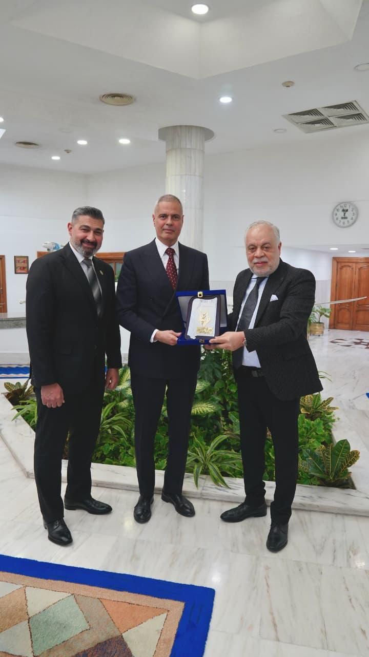 الإثنين، 20 أبريل 2026 04:20 ماستقبل الطيار أحمد عادل، رئيس الشركة القابضة لمصر للطيران، الدكتور أشرف زكي نقيب المهن التمثيلية، والفنان النائب ياسر جلال عضو مجلس الشيوخ ووكيل لجنة الثقافة والسياحة والأثار والإعلام، لبحث سُبل التعاون بين الناقل الوطني، مصر للطيران، وقطاعات الفن والإبداع المصري.