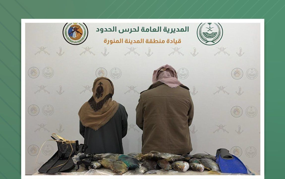 ضبطت الدوريات الساحلية لحرس الحدود في محافظة ينبع بمنطقة المدينة المنورة مواطنين مخالفين للائحة الأمن والسلامة لمزاولي الأنشطة البحرية في المناطق البحرية للمملكة، وذلك لممارستهما الصيد دون تصريح، وبحوزتهما أسماك مصيدة، وتم اتخاذ الإجراءات النظامية بحقهما بالتنسيق مع الجهات المختصة.