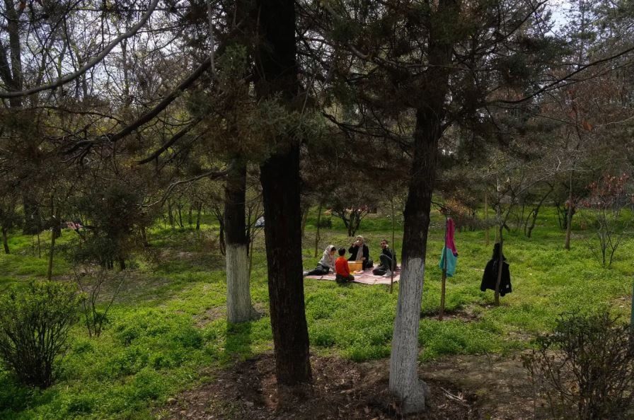 تستمتع عائلة بوقتها خلال يوم النزهة العامة السنوي في طهران بإيران