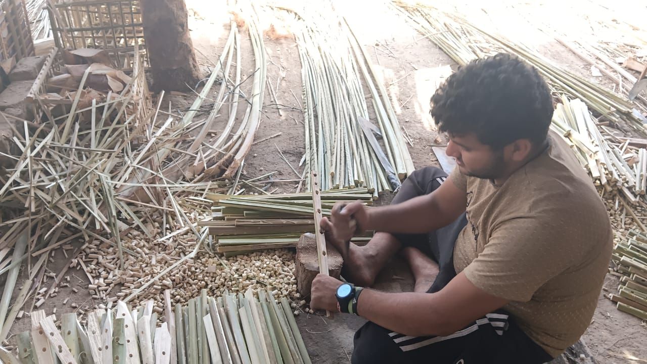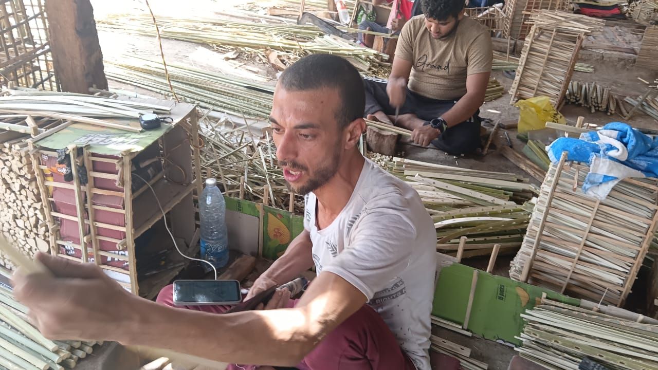 يقول " ابو يوسف عاشور" صنايعي مشغولات الجريد انهم يعملون علي مدار العام، ويعملون بطريقة أولية، يستخدمون ادوات بسيطة، مثل السلاح والساطور وينتجون أقفاص المانجو، وتستخدم خلال موسم جني محصول المانجو بأسوان، كما ينتجون اقفاص للفراخ بأحجام مختلفة.