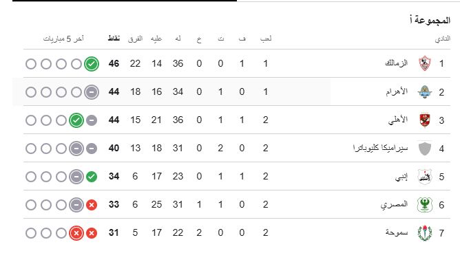 ـ حقق فريق الزمالك فوزاً ثميناً في الدور الأول على بيراميدز بهدف نظيف، لكنه خسر أيضاً من الأهلي بهدفين مقابل هدف.