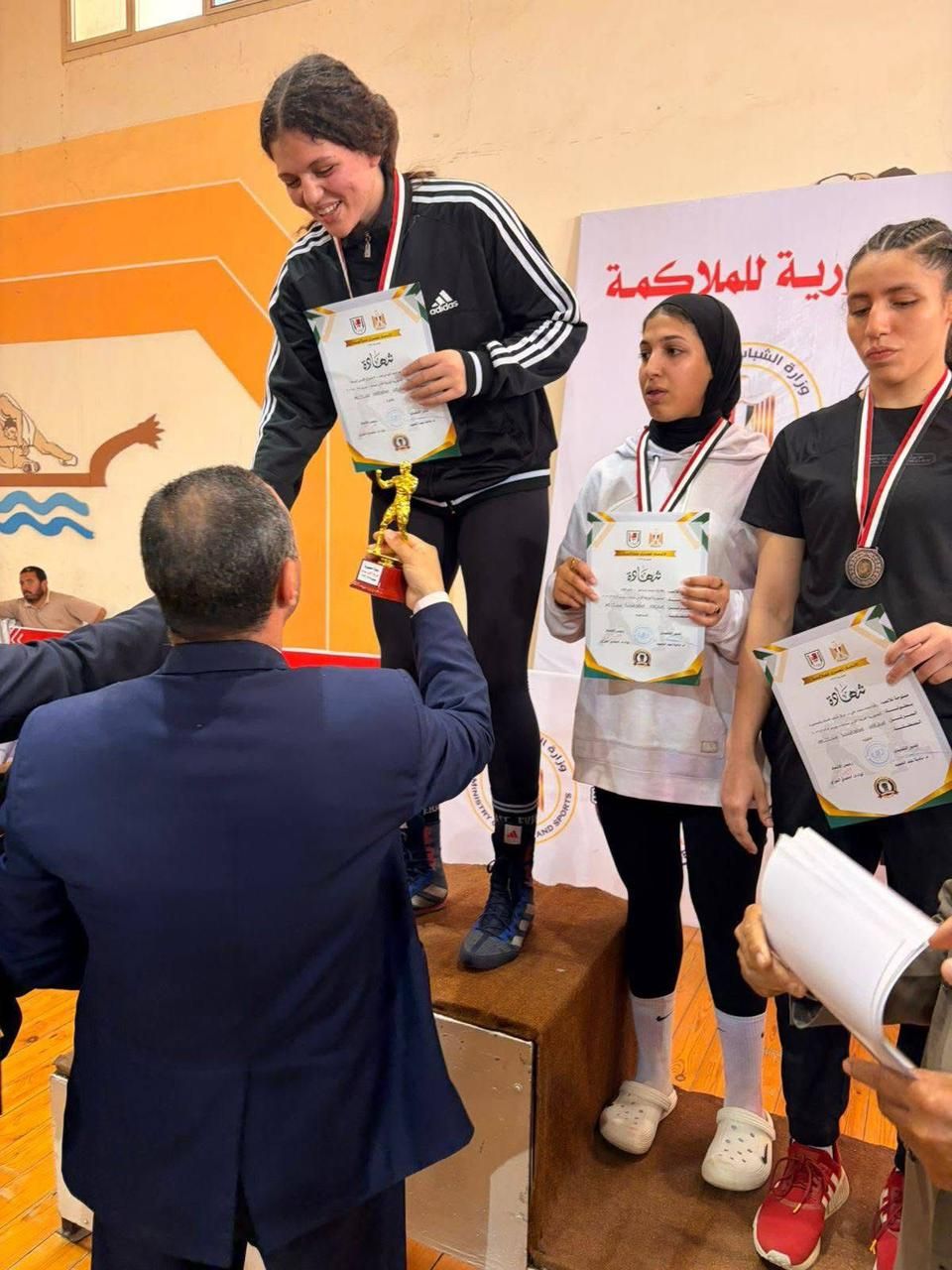 صورة تذكارية لتيا محمد نعيم بذهبية بطولة الجمهورية 2026 للملاكمة سيدات