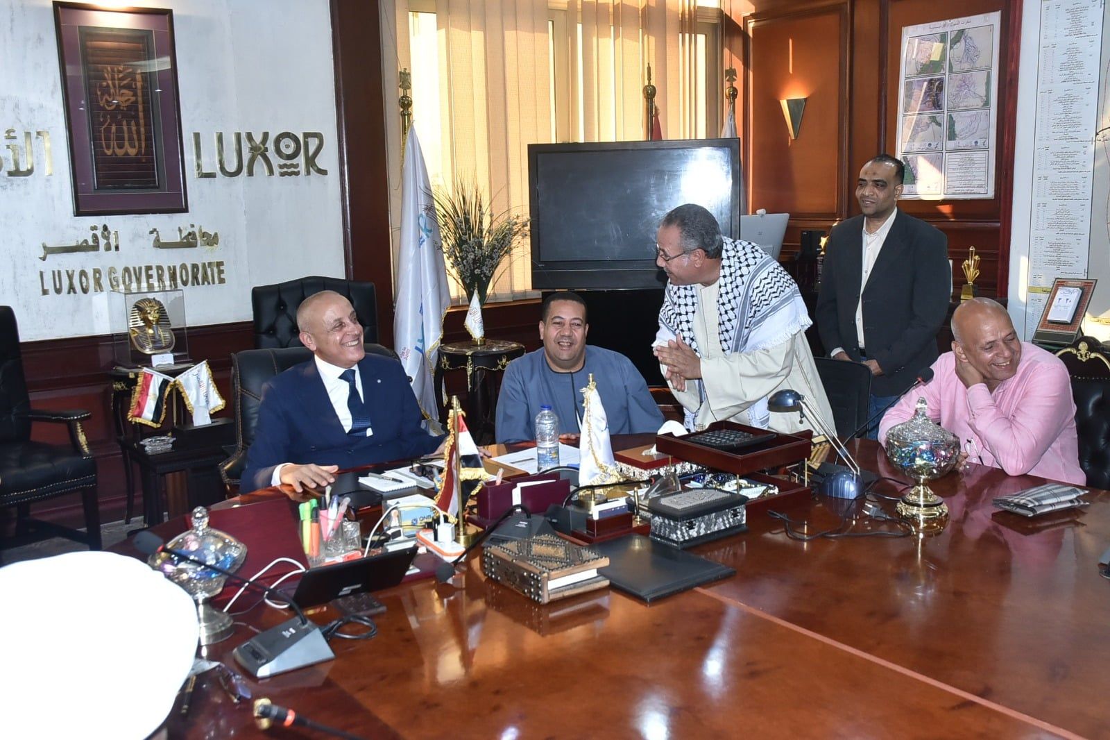 الثلاثاء، 21 أبريل 2026 12:12 معقد المهندس عبدالمطلب عماره محافظ الأقصر، إجتماع مع أهالي قرية قرنة مرعي ومنطقة حوض الرمال التابعين لمركز ومدينة القرنة غرب المحافظة، وذلك لبحث مطالبهم والاستماع إلى احتياجاتهم، وذلك بحضور محمود عبد الشافي نائب مدير الإدارة العامة لأملاك الدولة ، والنوبي حجاج نائب رئيس مركز ومدينة القرنة.