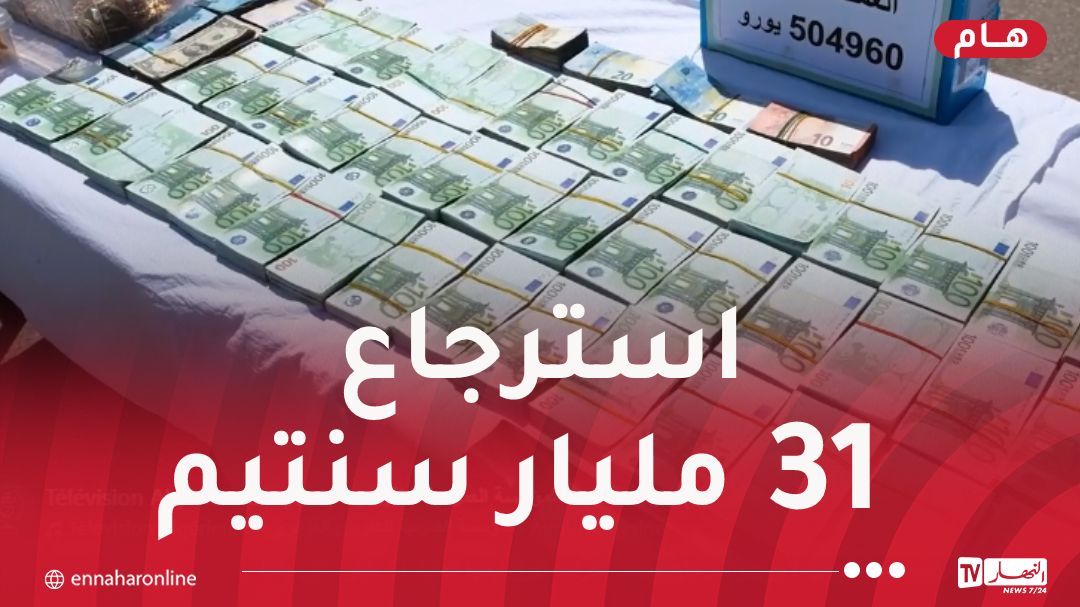وأسفرت العملية إجمالا عن توقيف 03 أشخاص، مع ضبط واسترجاع مبالغ مالية معتبرة. واسترحاع مبلغ مالي يقدر بـأزيد من نصف مليون يورو ومبالغ مالية أخرى من العملات الأجنبية. وكذا مبلغ 1 مليار و622 مليون سنتيم من العملة الوطنية.