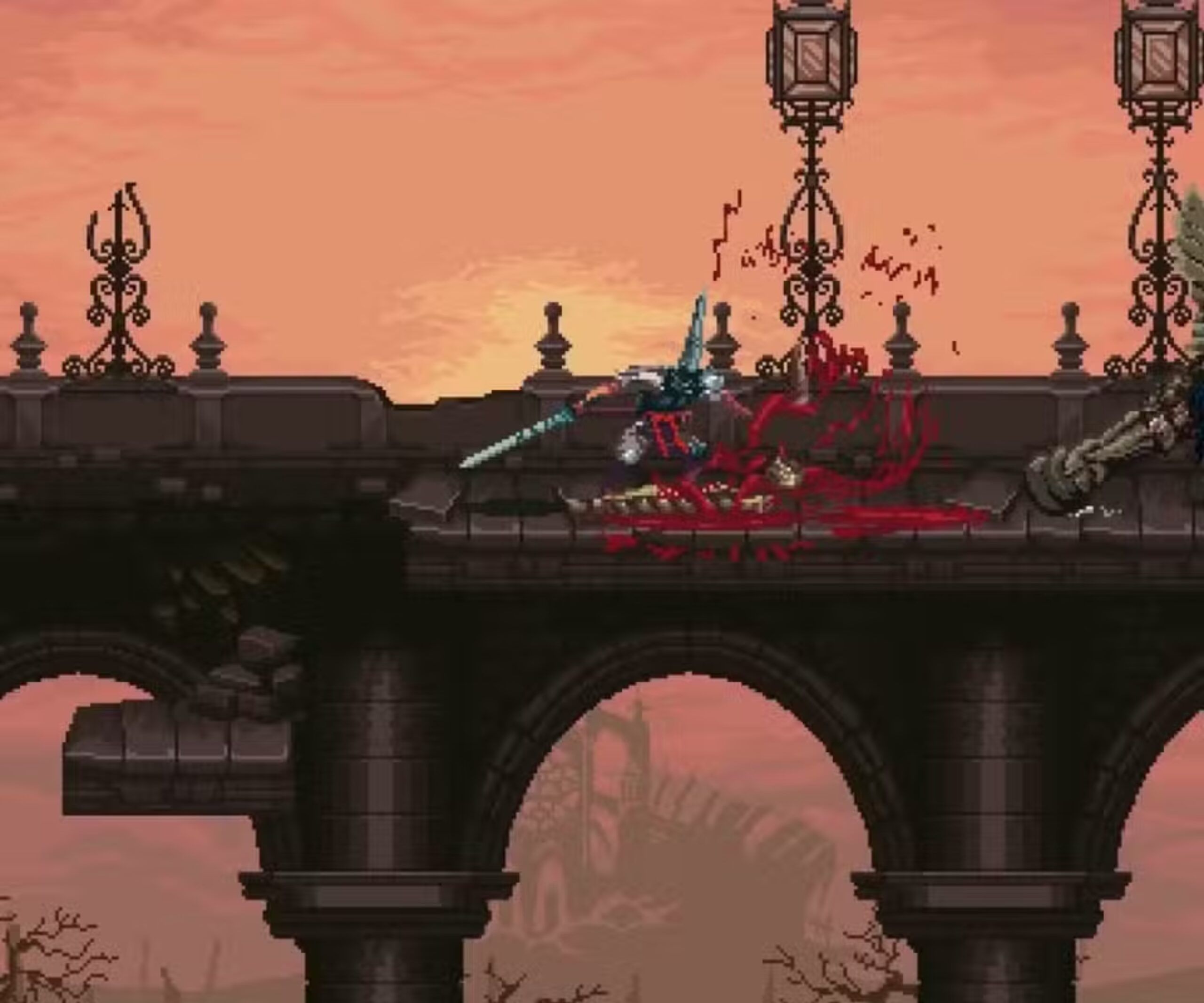 أما القتال فهو من أفضل ما قدمته ألعاب الأكشن ثنائية الأبعاد الحديثة لأنه دقيق وقاس ومبني على إحساس واضح بالوزن والتأثير. فكل ضربة تحمل معناها وكل مواجهة تتطلب انتباهًا حقيقيًا ولا تترك مجالًا واسعًا للتهاون أو العشوائية. وهذا ما يجعل القتال في Blasphemous مُرضيًا جدًا لأنه لا يعتمد فقط على الشكل الجميل أو الحركات اللافتة بل على شعور فعلي بأن كل معركة تمثل اختبارًا حقيقيًا لمهارة اللاعب وصبره وقدرته على التعلم من أخطائه.
