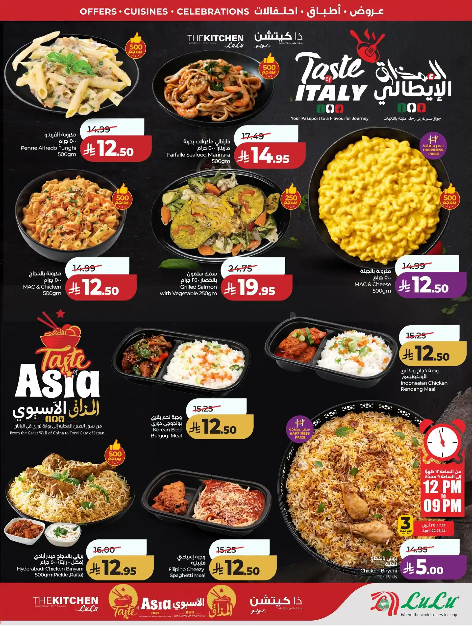 نكهات من كل بقاع الأرض، وعروض ما تتفوت! ????⛰️ مهرجان لولو عالم المأكولات جاكم! من ٢٢ أبريل إلى 28 أبريل، عيشوا الطعم الأصلي مع عروض تسوق خيالية. زورونا في فروع لولو (جدة، تبوك، ينبع، وخميس مشيط).