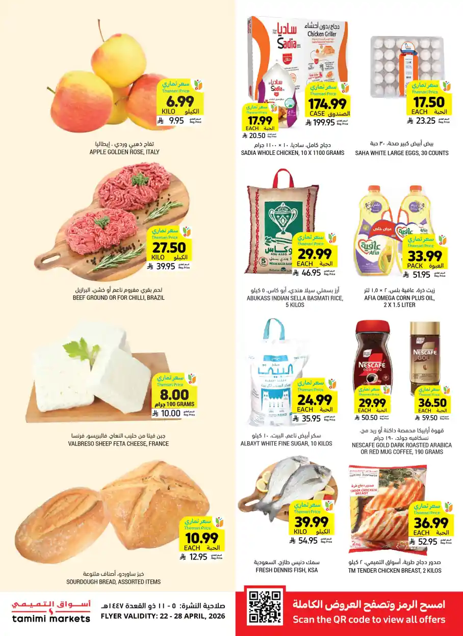 عروض التميمى اليوم سارية من 22 ابريل حتى 28 ابريل 2026 او حتى نفاذ الكمية فى فروع التميمى الدمام و التميمى الجبيل و التميمى حفر الباطن و التميمى الخبر و التميمى الاحساء و التميمى الظهران و التميمى الرياض و التميمى جدة و التميمى القصيم.