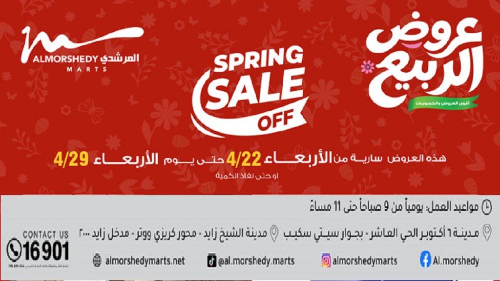 ✨ أقوى عروض وخصومات الربيع في المرشدي ???????? من الأربعاء 22 إبريل حتى الأربعاء 29 إبريل دلوقتي المرشدي بقى أونلاين