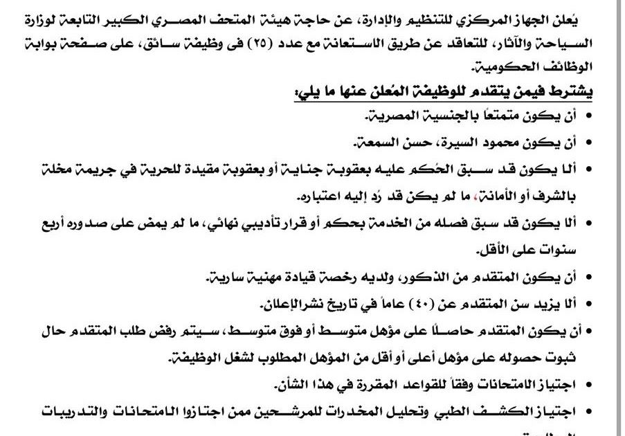 وظائف شاغرة بالمتحف المصري وظائف حكومية على بوابة الوظائف الحكومية والتقديم اون لاين