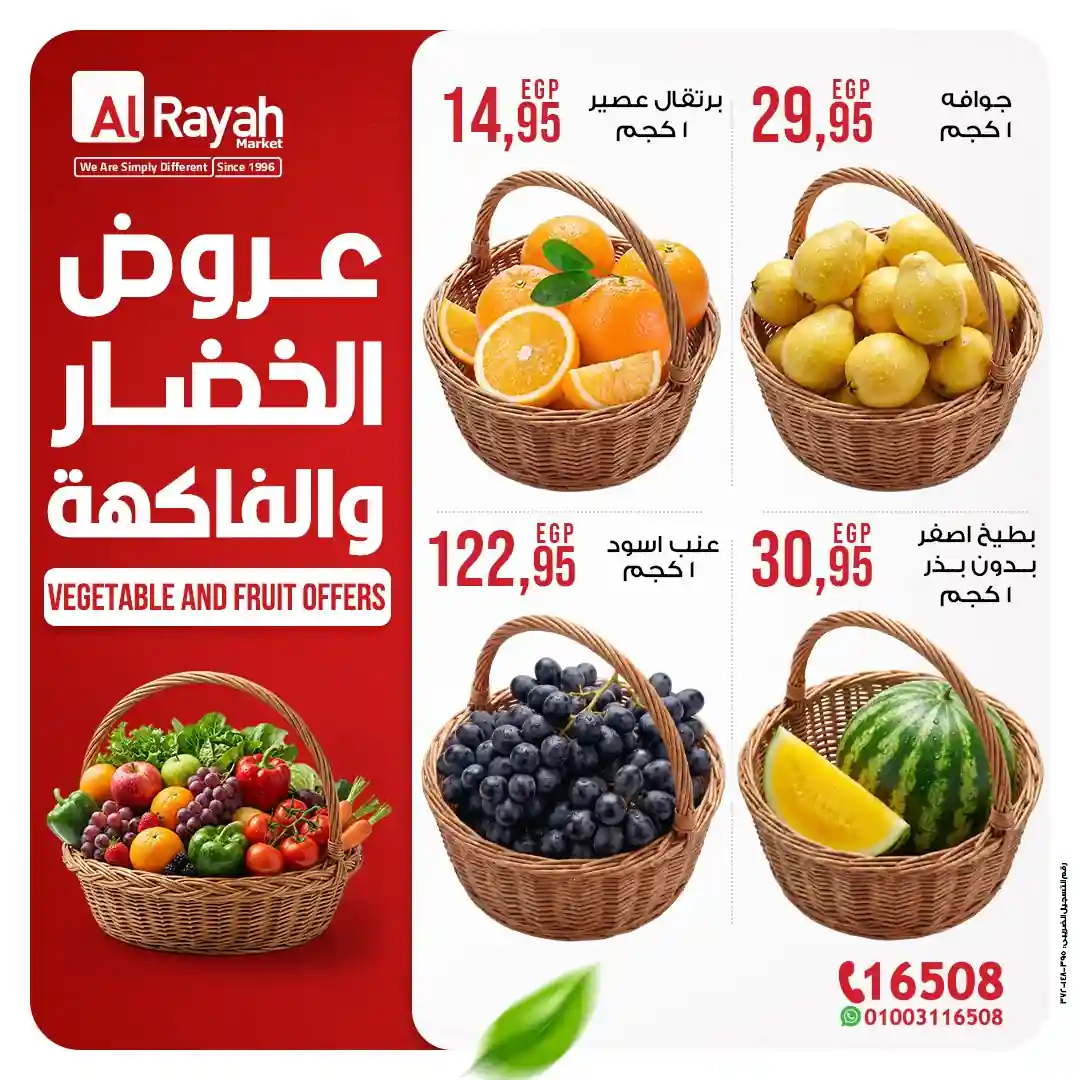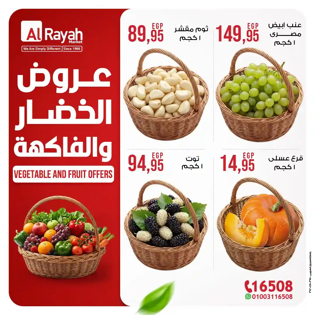 كل يوم فريش… كل يوم توفير مع عروض الخضار والفاكهة من الرايه ماركت ???? بجودة مضمونة وأسعار تناسب كل بيت ???? عروضنا متاحة في فروع القاهرة والجيزة والزقازيق والمنيا وأسيوط فقط.