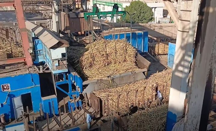 مصنع سكر أرمنت خلال موسم حصاد وعصير قصب السكر