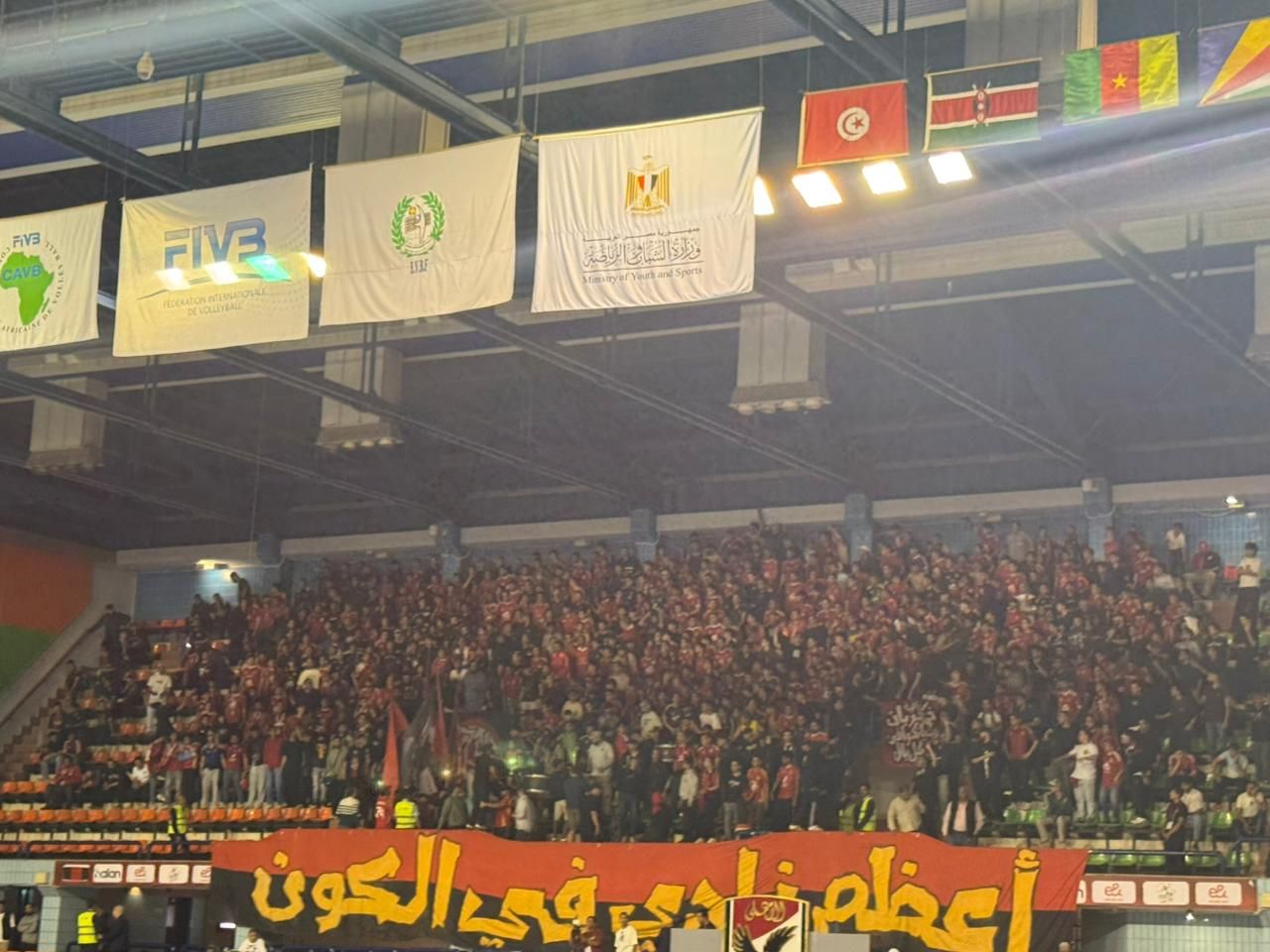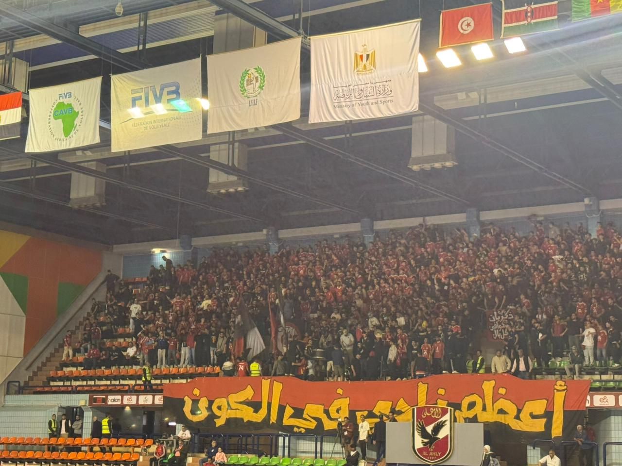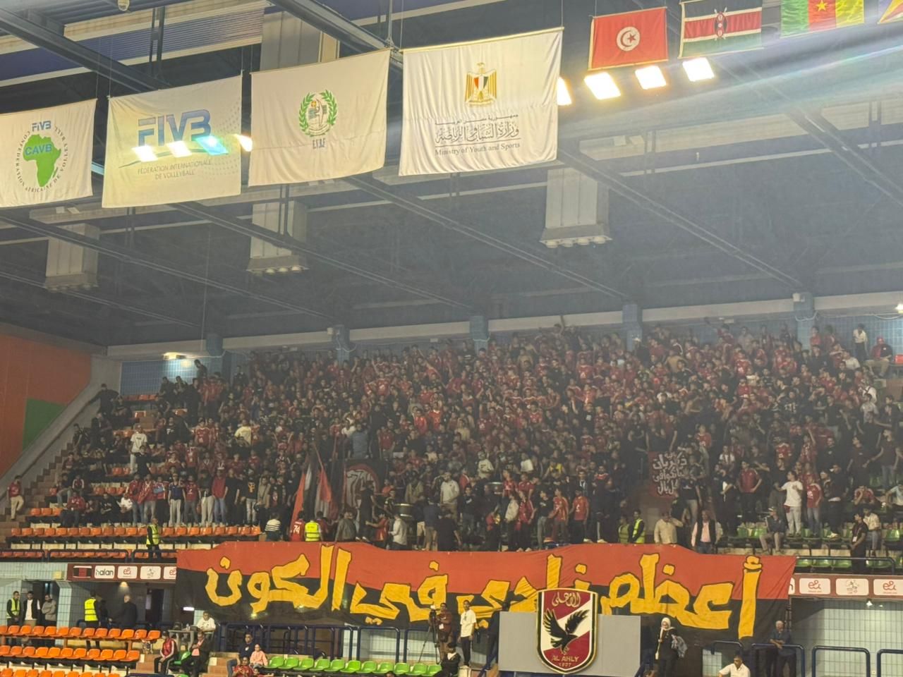 الخميس، 23 أبريل 2026 04:00 محرص عدد كبير من جماهير الأهلي علي مؤازرة فريق سيدات الكرة الطائرة بالنادى الأهلي أمام نظيره البنك التجاري الكيني مساء اليوم الخميس في إطار نهائي بطولة أفريقيا للأندية التي يستضيفها النادى الأهلي علي أرضه ووسط جماهيره .