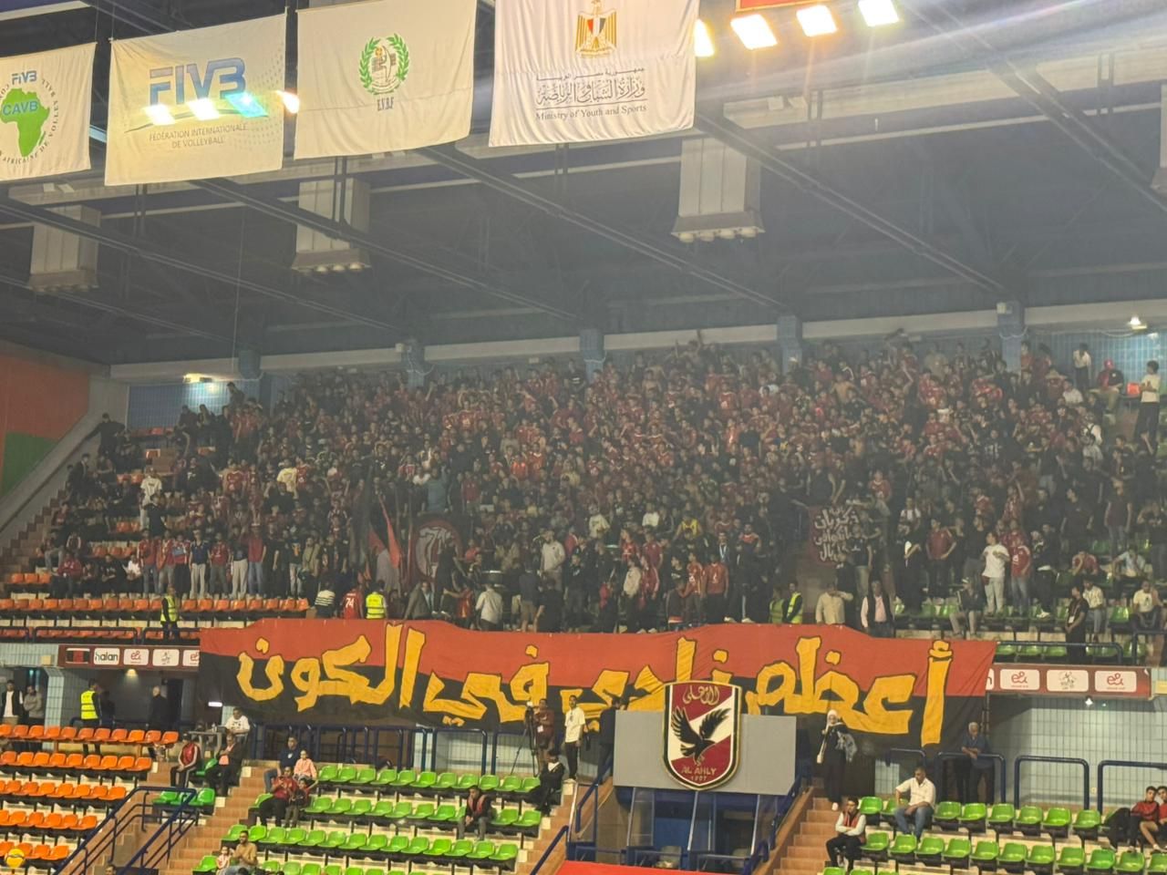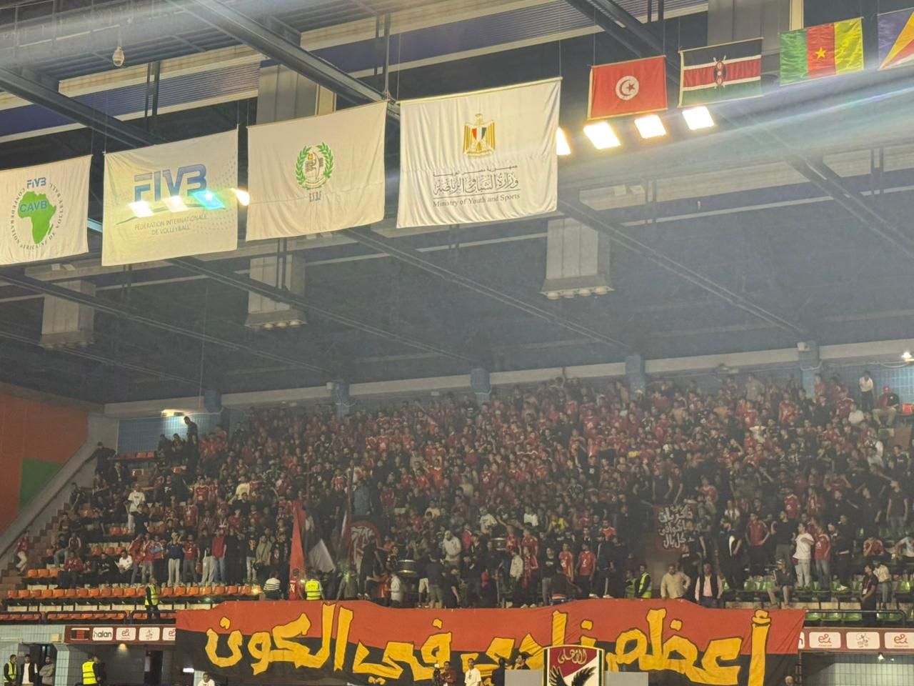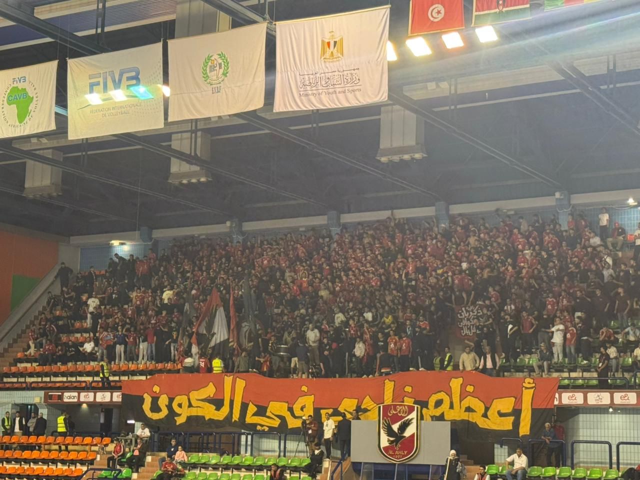 الخميس، 23 أبريل 2026 04:00 محرص عدد كبير من جماهير الأهلي علي مؤازرة فريق سيدات الكرة الطائرة بالنادى الأهلي أمام نظيره البنك التجاري الكيني مساء اليوم الخميس في إطار نهائي بطولة أفريقيا للأندية التي يستضيفها النادى الأهلي علي أرضه ووسط جماهيره .