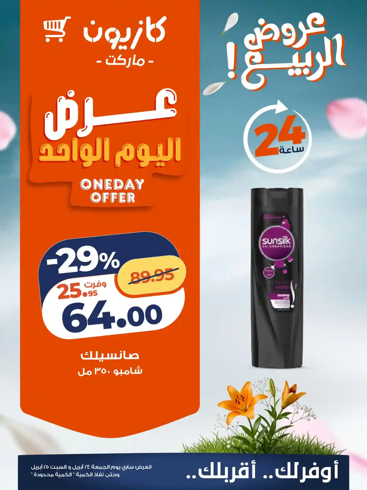أساسيات العناية بالشعر بأوفر سعر طول اليوم فى عروض كازيون اليوم ! العرض متاح يوم الجمعة 24 أبريل ويوم السبت 25 أبريل وحتى نفاذ الكمية “الكمية محدودة”. زورونا في أقرب فرع.