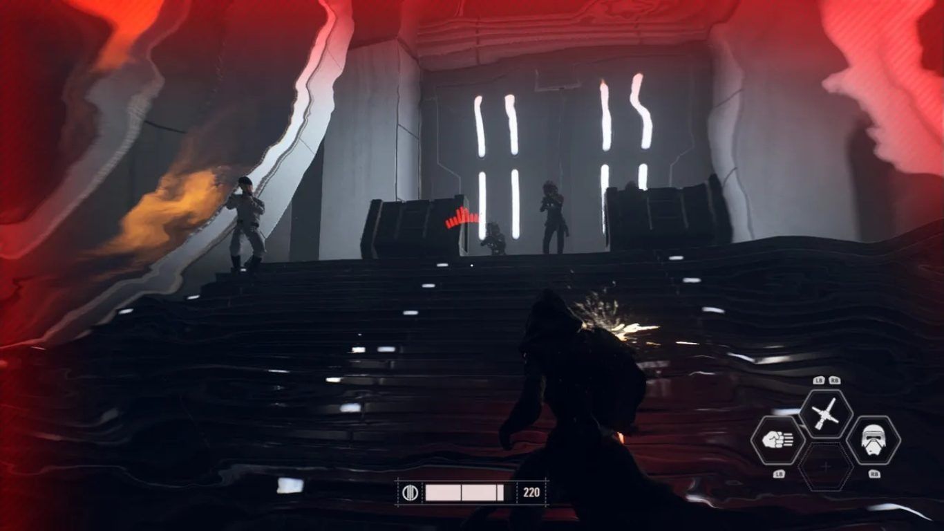 تواجه في هذه المنطقة مجموعة متنوعة من الوحدات الإمبراطورية، بما في ذلك الجنود المدرعون الثقيلون، ووحدات Jumptroopers التي تتحرك بسرعة عبر الهواء، وجنود Stormtroopers العاديون، والقناصة الذين يستهدفونك من مسافات بعيدة، وجنود الاشتباك القريب، إضافة إلى الضباط الذين يدعمون القوات الأخرى. يحاول جميع هؤلاء إبطاء تقدمك ومنعك من الوصول إلى هدفك، لذلك يتعين عليك التعامل معهم بحذر، واستخدام أماكن الاحتماء، والتركيز على الأهداف الأكثر خطورة أولًا لضمان استمرار تقدمك عبر سطح السفينة.
