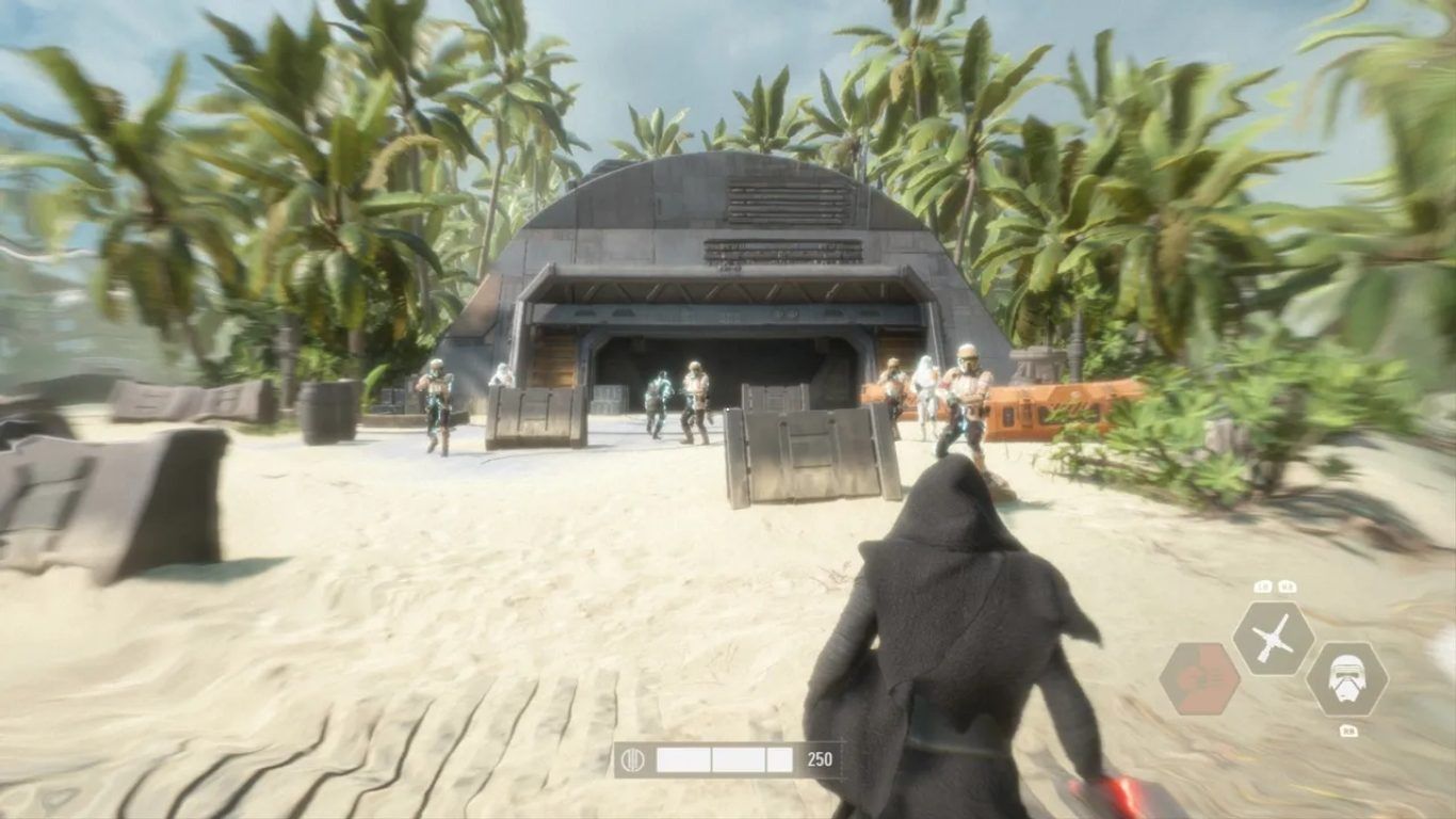 تبدأ على كوكب Scarif، حيث تطارد تمثيلًا لِـ Del. تقدّم إلى الأمام، واقضِ على أي جنود Stormtroopers تراهم في طريقك أثناء المطاردة، مع الاستمرار في التقدم ضمن المسار المحدد.