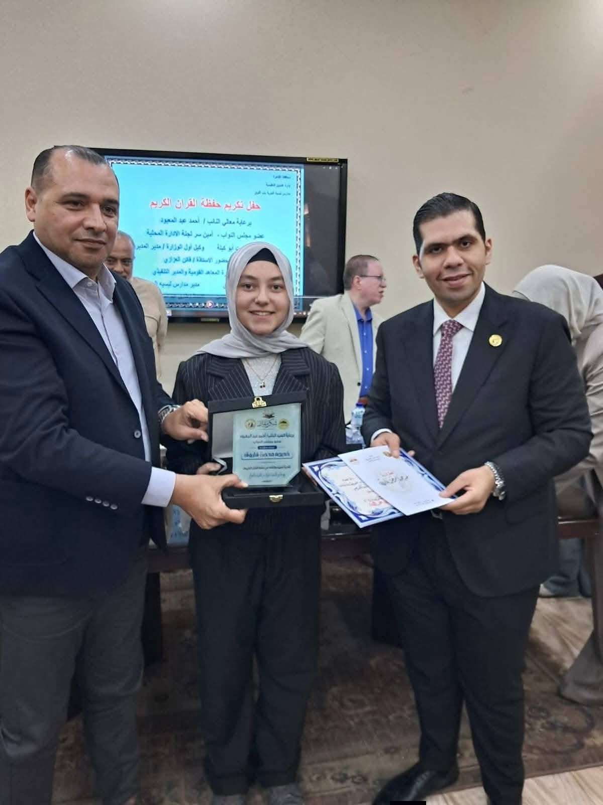 النائب يسلم الطالبة درع التفوق وحفظ القرآن الكريم
