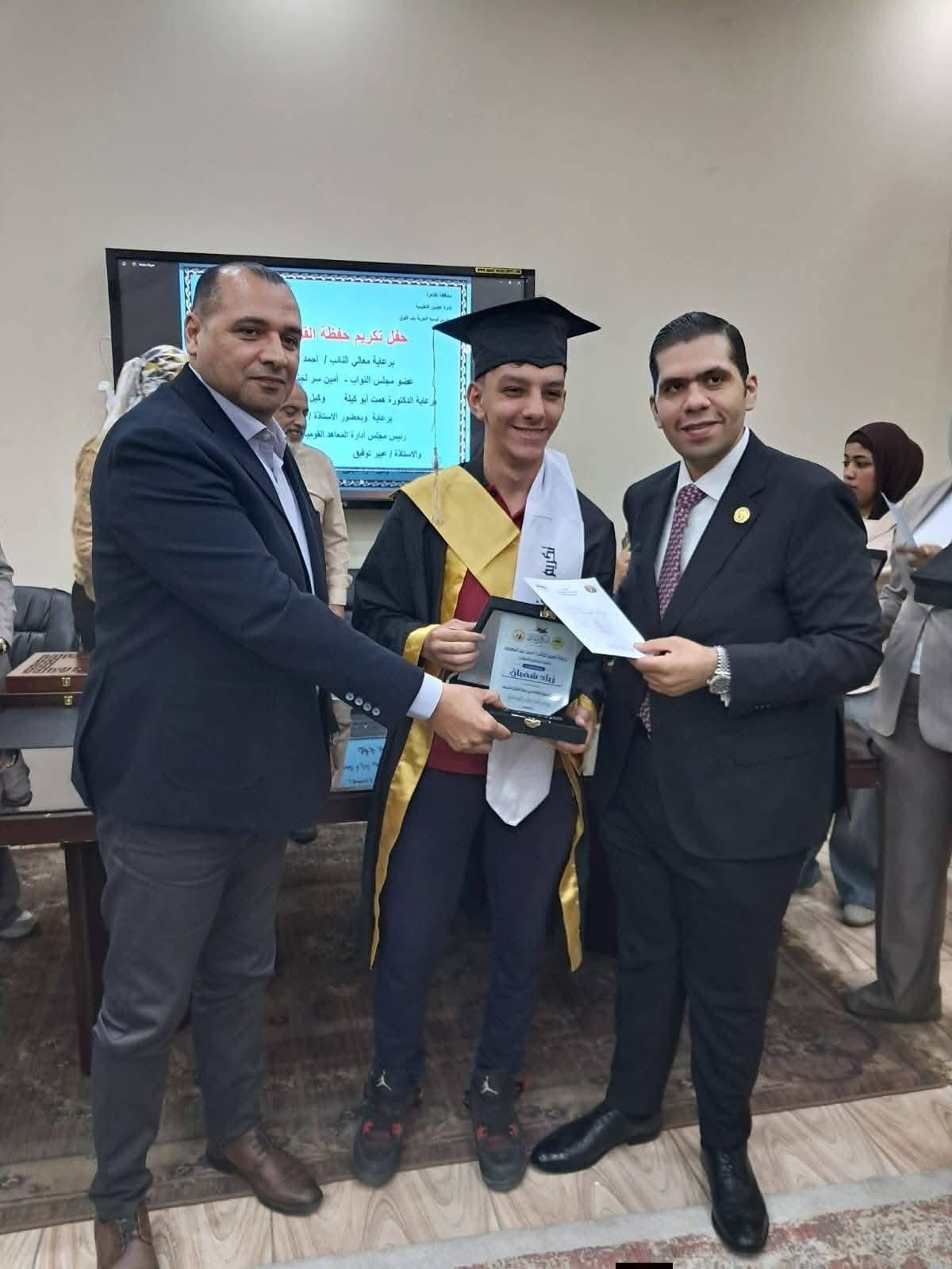 النائب أحمد عبد المعبود يكوم الطالب زياد شعبان من حفظة القرآن الكريم بمدرسة ليسيه الحرية