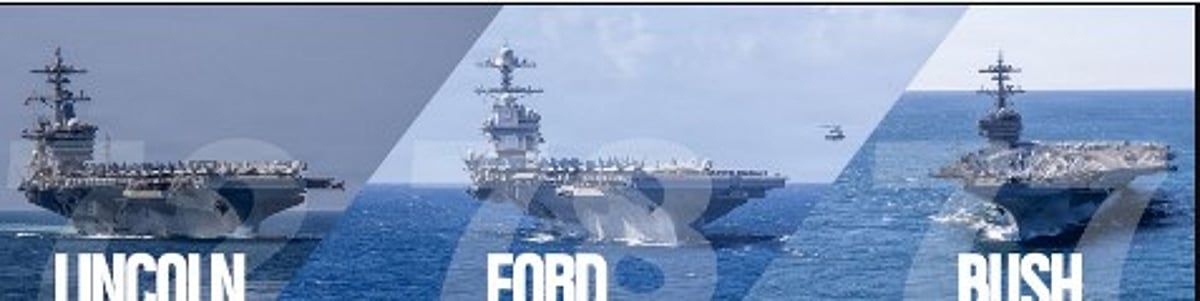 وأوضحت أن هذه الحاملات تضم يو أس أس أبراهام لينكولن (CVN 72)، ويو أس أس جيرالد آر. فورد (CVN 78)، ويو أس أس جورج إتش. دبليو. بوش (CVN 77) أكثر من 200 طائرة و15,000 من البحارة ومشاة البحرية.