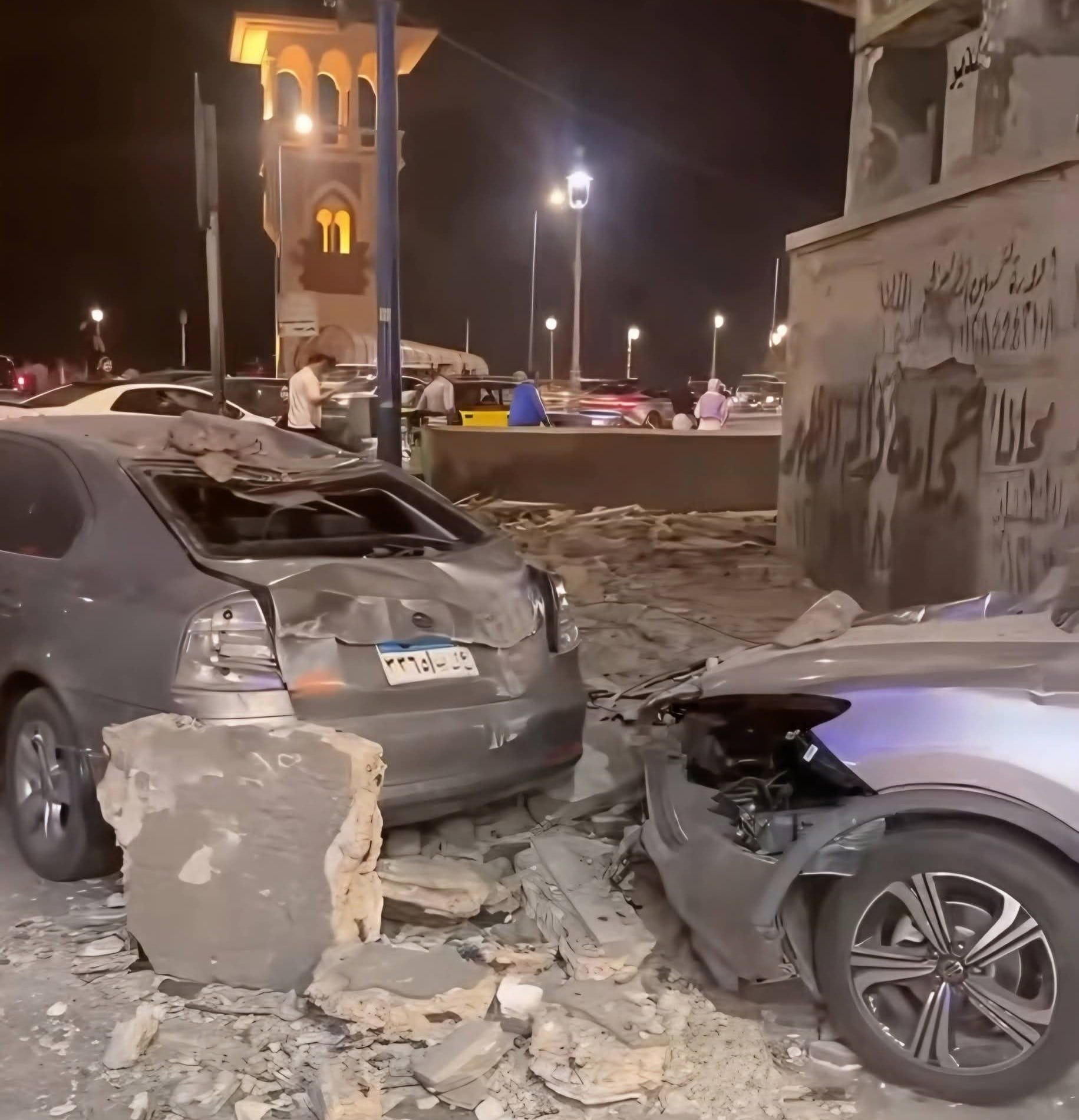 تهشم سيارتين اثر انهيار اجزاء عقار بالإسكندرية