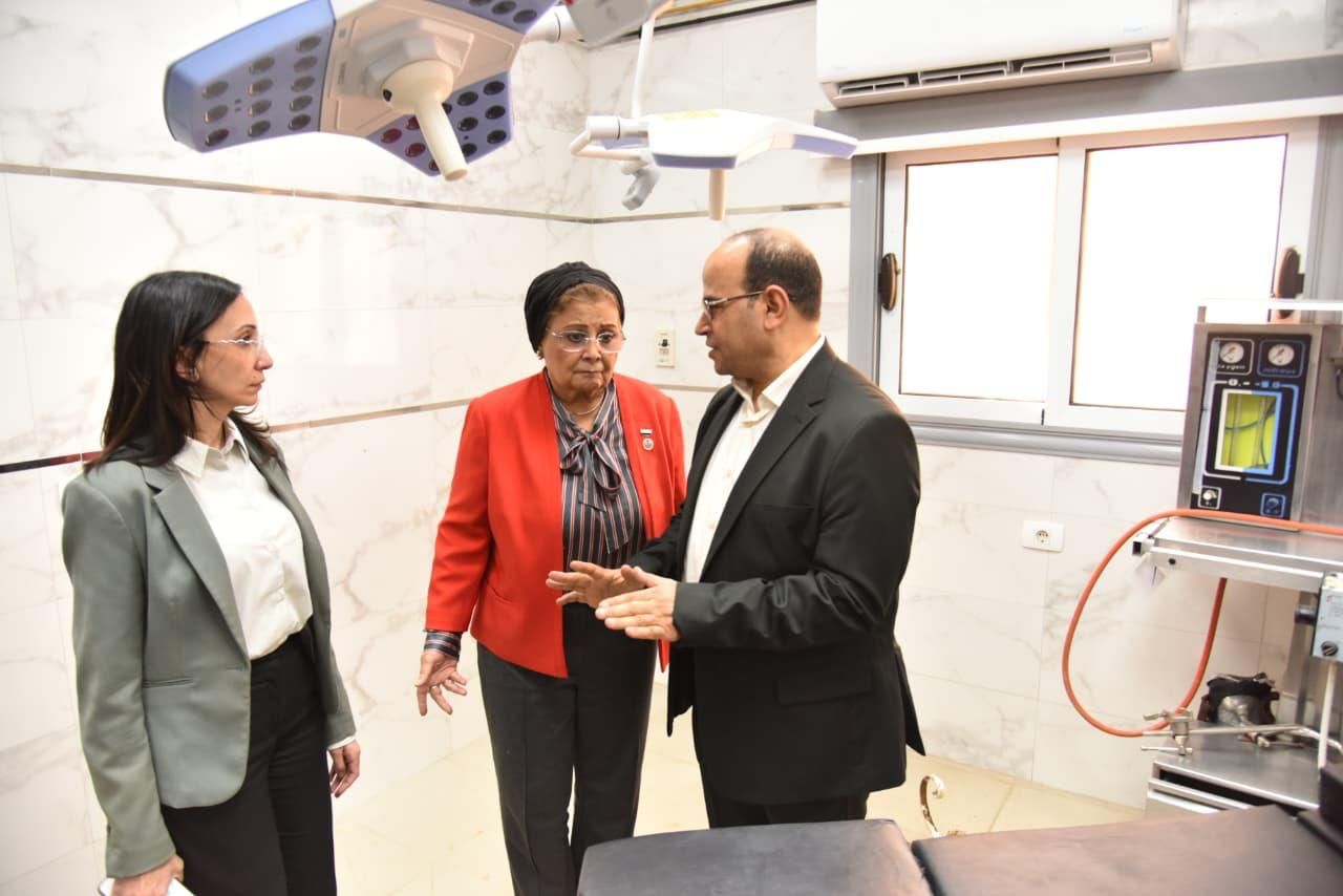 وتفقدت مستشفى المحمودية المركزي برفقة الدكتورة جاكلين عازر محافظ البحيرة، لمتابعة إنشاء مركز تميز لخدمات صحة الأم وحديثي الولادة، حيث شددت على سرعة تلافي الملاحظات الفنية والإدارية، وتطبيق الأدلة الإرشادية للولادة الآمنة، وتفعيل ممارسات «الساعة الذهبية» وملامسة الجلد للجلد، مع إعادة تنظيم وحدة حديثي الولادة حسب درجات الرعاية، وتطوير بروتوكولات استخدام المضادات الحيوية، وتأهيل الفرق الطبية خلال شهر.