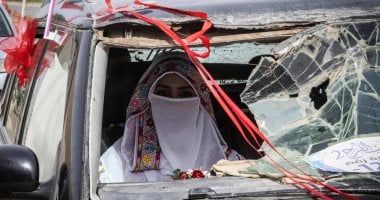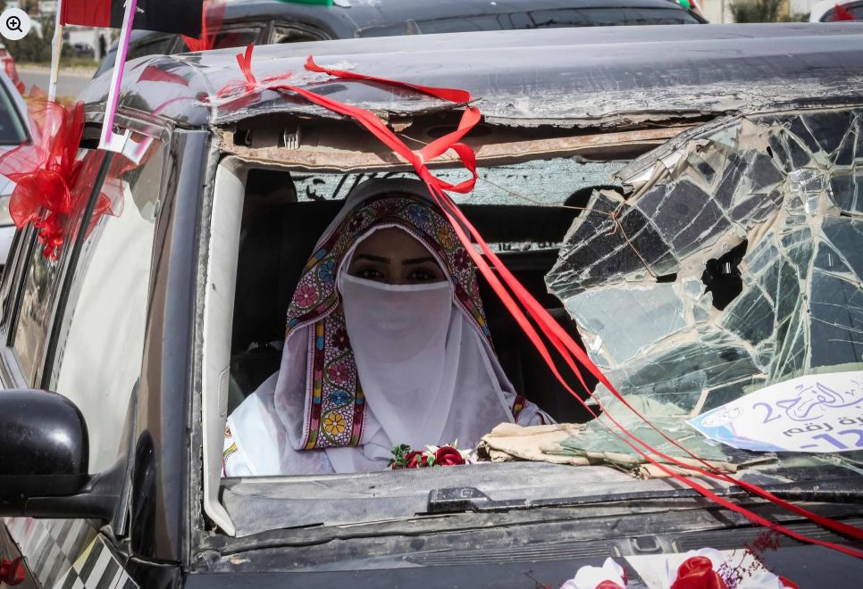 السبت، 25 أبريل 2026 03:42 مفي مشهد يؤجج المشاعر، زُفت عروس في قطاع غزة المحاصر من قبل قوات الاحتلال الإسرائيلية منذ أكتوبر 2023، في سيارة دمرتها القنابل التي أسقطها الاحتلال على سكان القطاع.