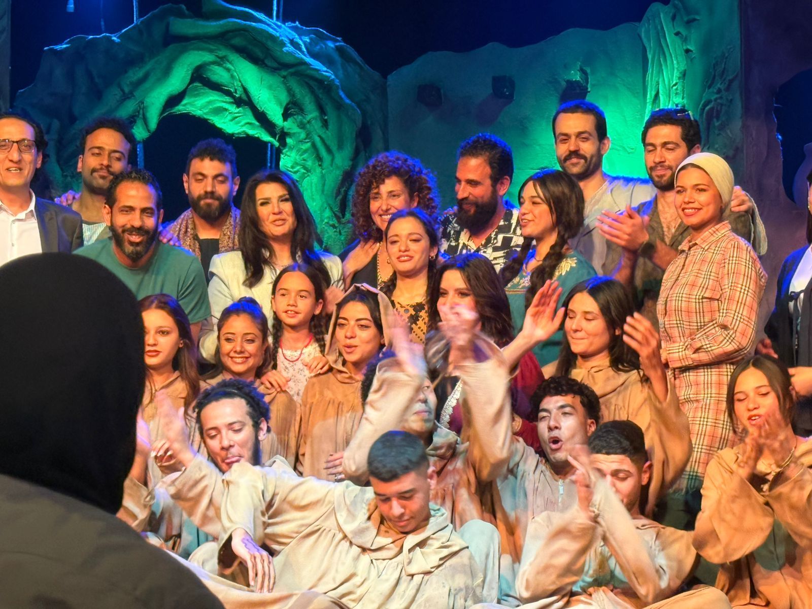 منى الشاذلي وحنان مطاوع مع أبطال عرض متولي وشفيقة بمسرح الطليعة