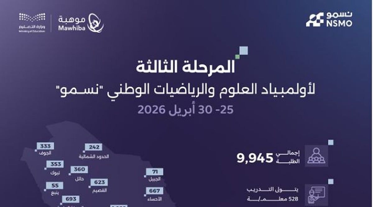 وتشهد المرحلة الثالثة من أولمبياد العلوم والرياضيات الوطني "نسمو" تنافس الطلبة لتمثيل فرق المناطق التعليمية، عبر برنامج متكامل يبدأ بتدريب حضوري في (16) إدارة تعليمية، بإشراف (528) معلمًا ومعلمة تم تأهيلهم مسبقًا، وتُختتم هذه المرحلة باختبار حضوري في إدارات التعليم.