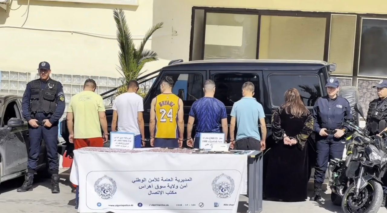 في عمليه نوعيه تمكن قوات الشرطه القضائيه بفرقه مكافحه الاتجار الغير مشروع بالمخدرات والمؤثرات العقليه بامن ولايه سوق اهراس من الاطاحه بشبكه اجراميه منظمه.