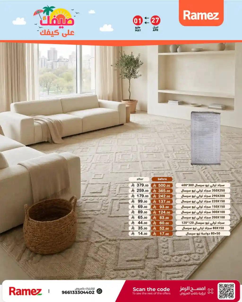 أسبوع الرواتب وصل… والعروض الأقوى من رامز ???????? لا تفوّت أقوى التخفيضات على كل احتياجاتك ???? أسعار نار ما تتكرر وفرصة تعبي بيتك بأقل تكلفة ???? ???? من 27 أبريل إلى 1 مايو ???? في جميع فروع رامز بالسعودية رامز الرياض و رامز الدمام و رامز الاحساء و رامز تبوك و رامز حفر الباطن