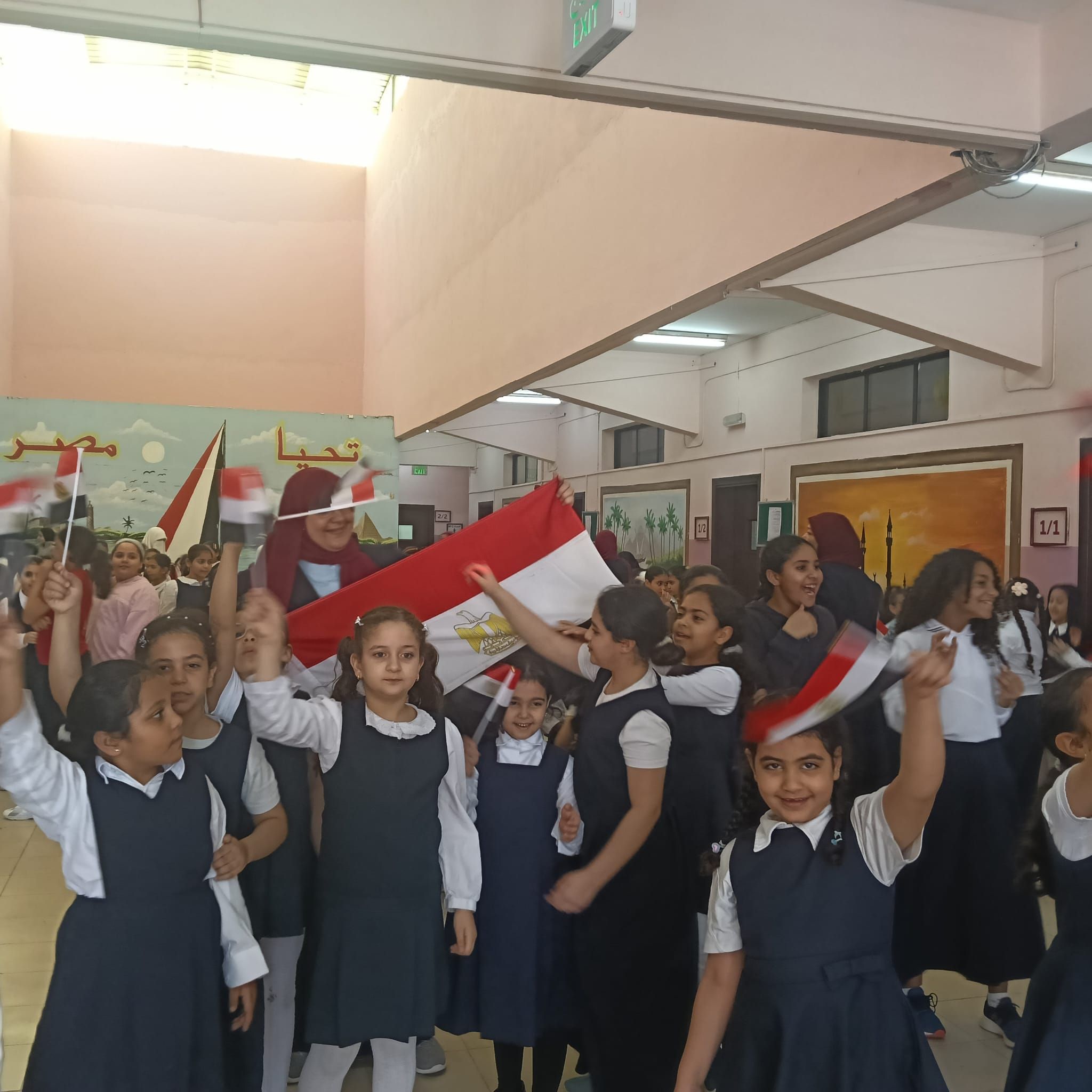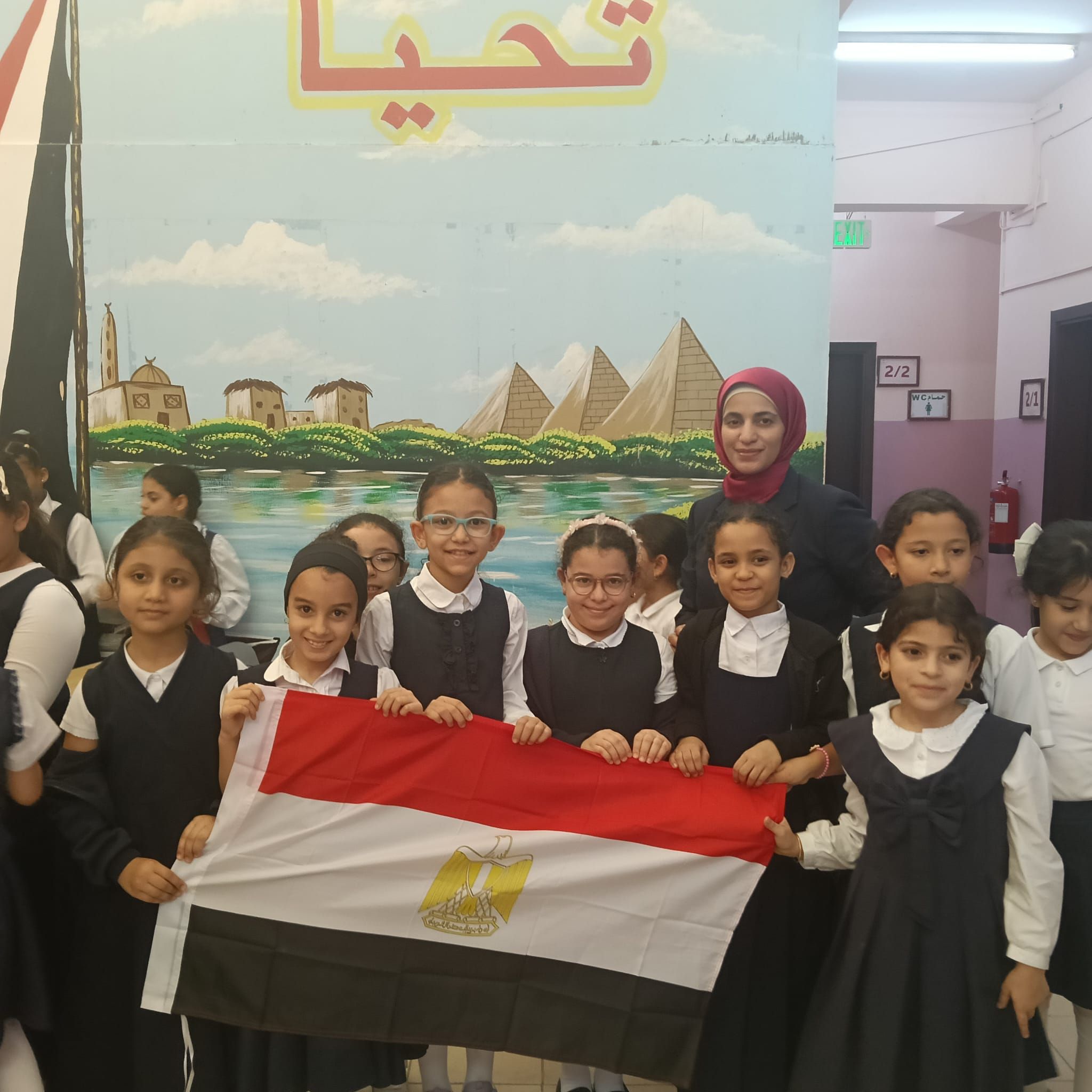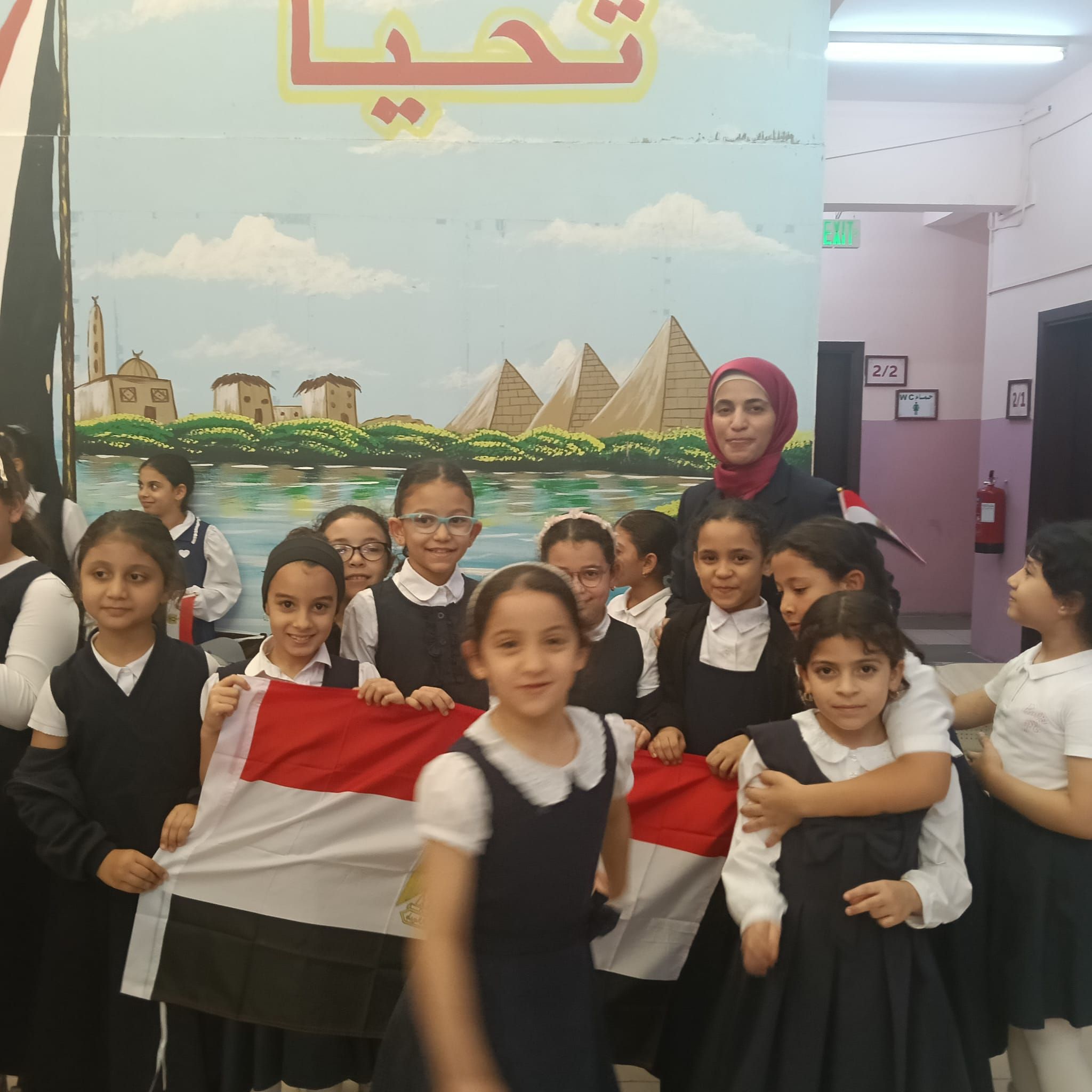 علم مصر يتوسط الطالبات