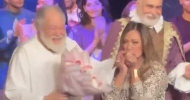 ليلي علوي تقدم بوكيه ورد للفنان الكبير يحيي الفخراني
